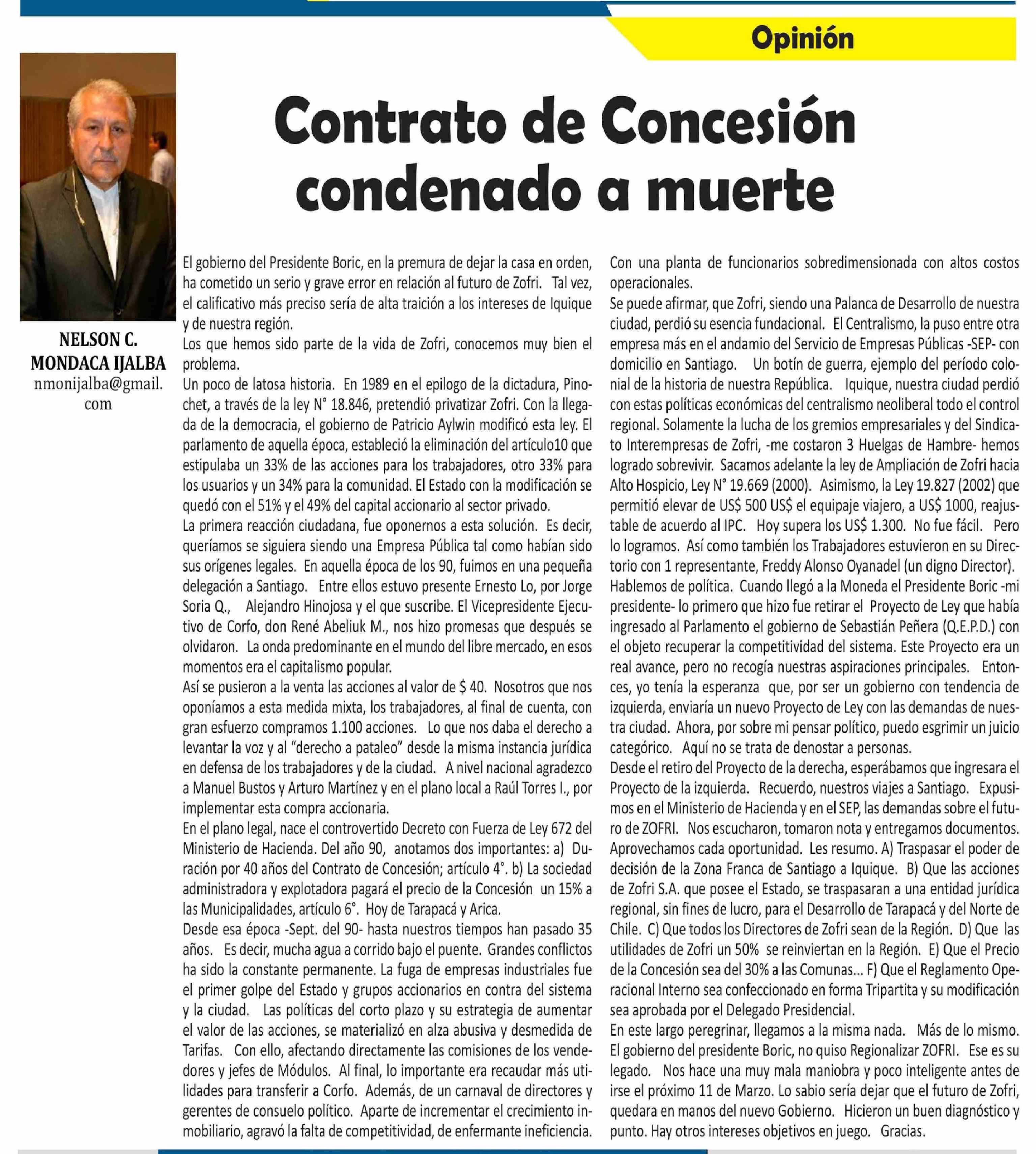 COLUMNAS DE OPINIÓN: Contrato de Concesión condenado a muerte
