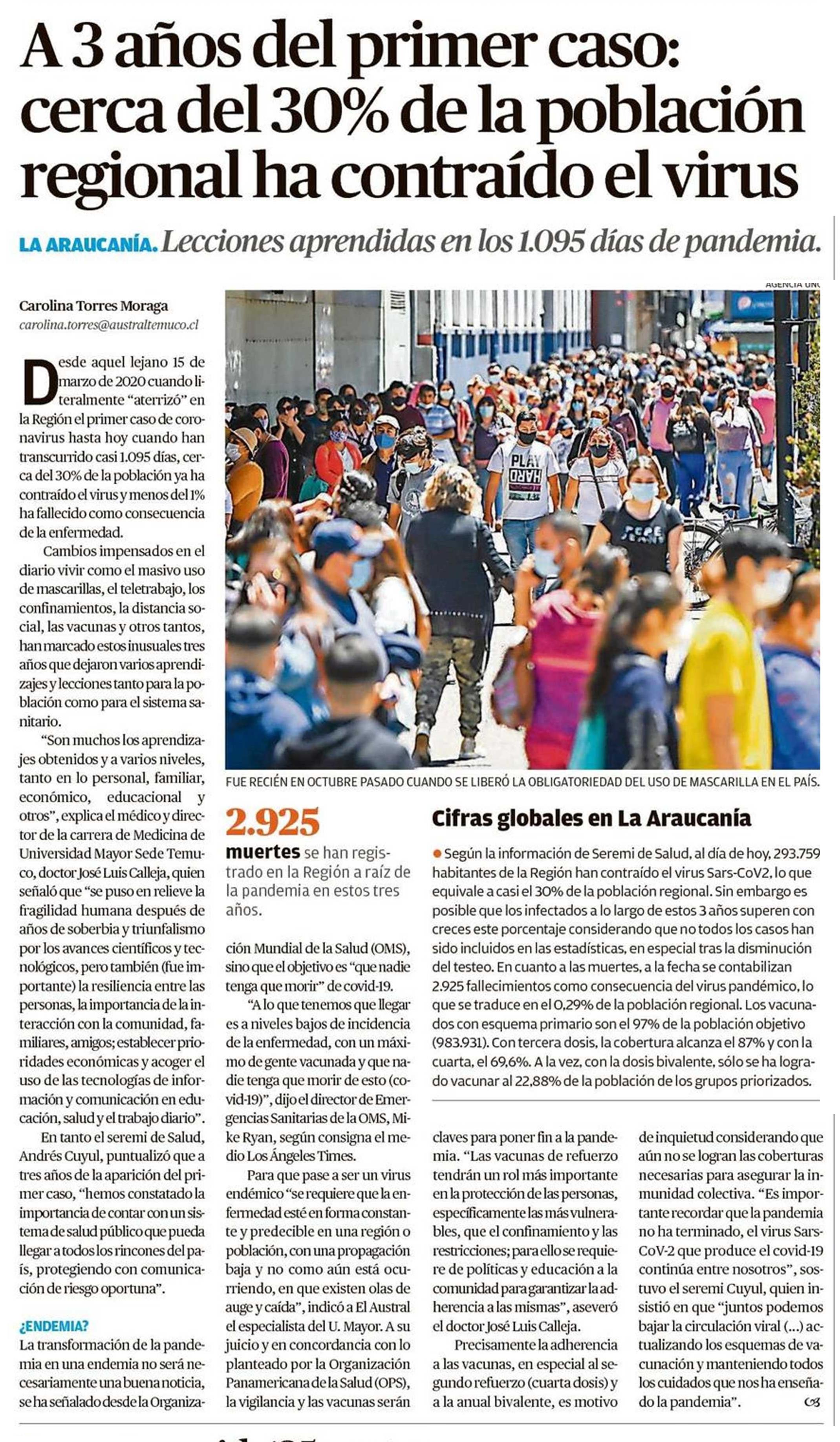 A 3 años del primer caso: cerca del 30% de la población regional ha contraído el virus