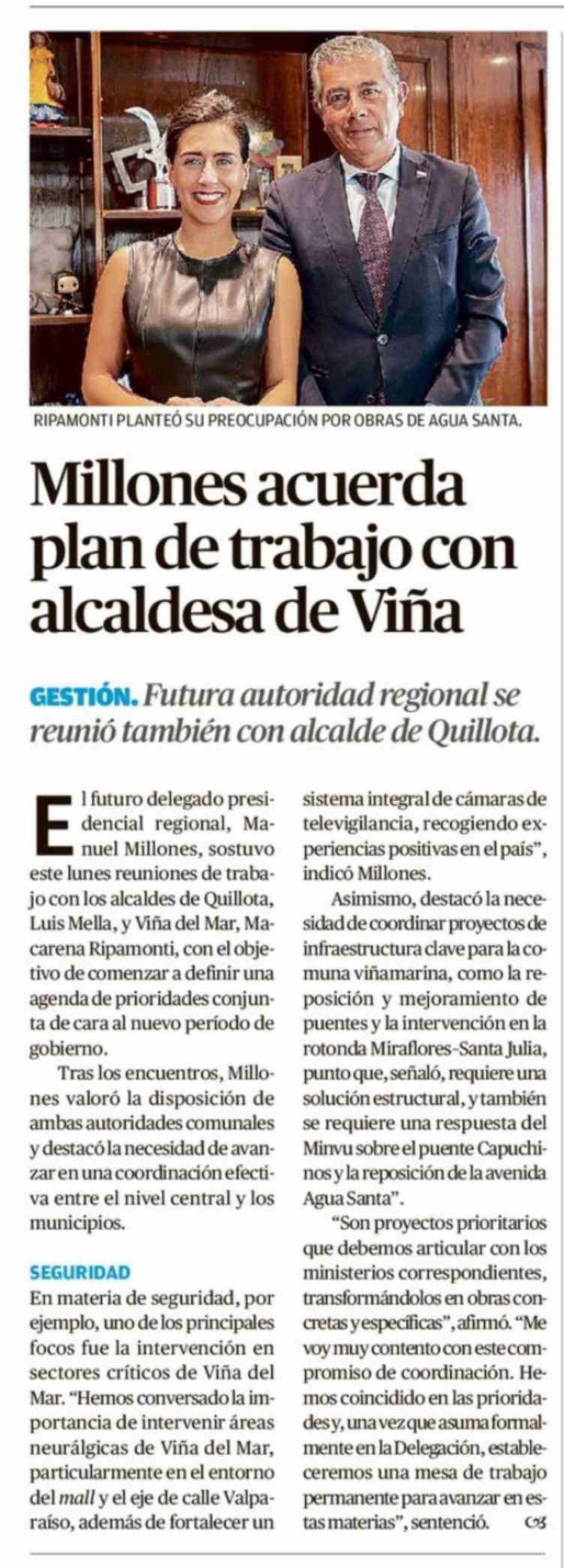 Millones acuerda plan de trabajo con alcaldesa de Viña