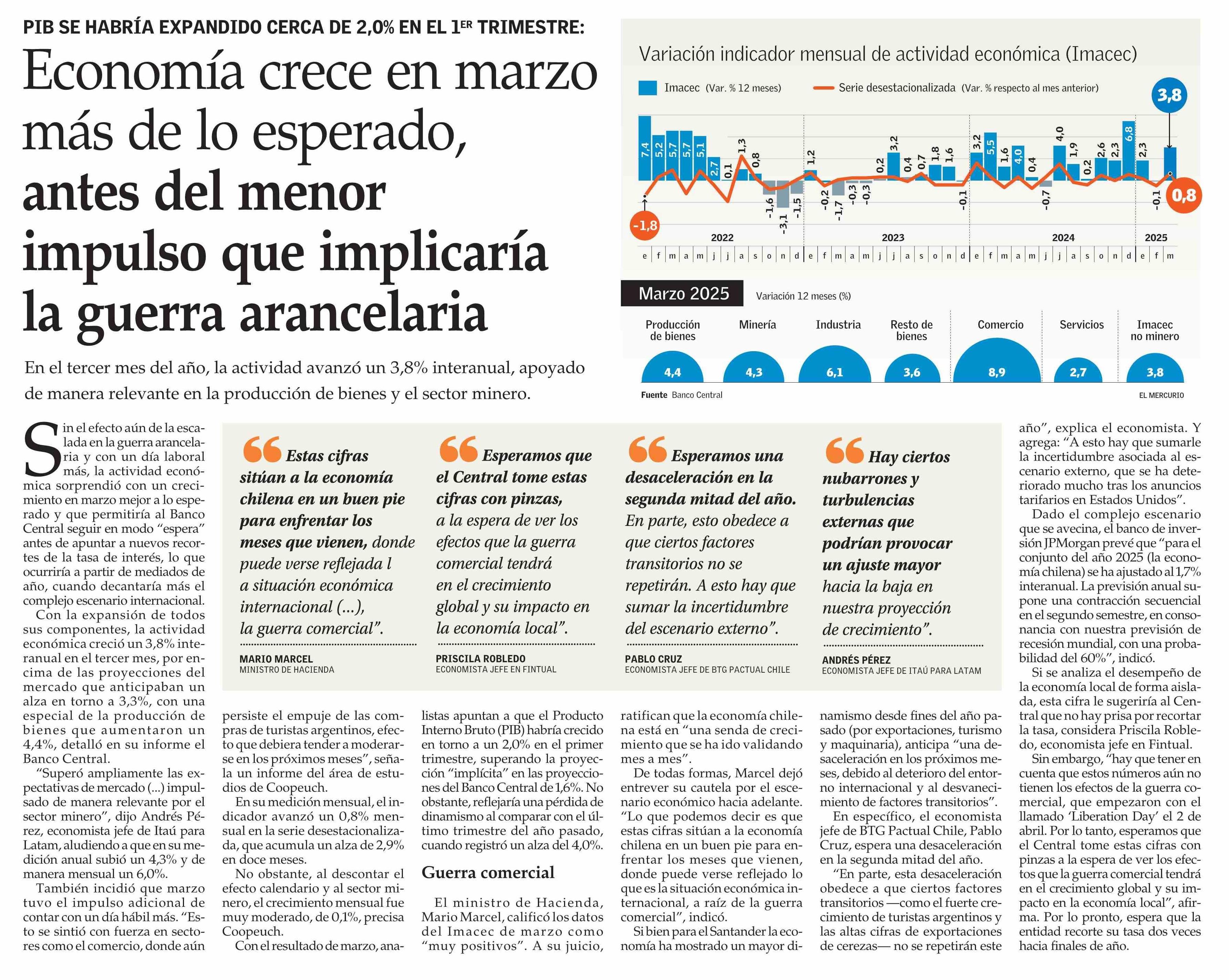 Economía crece en marzo más de lo esperado, antes del menor impulso que implicaría la guerra arancelaria