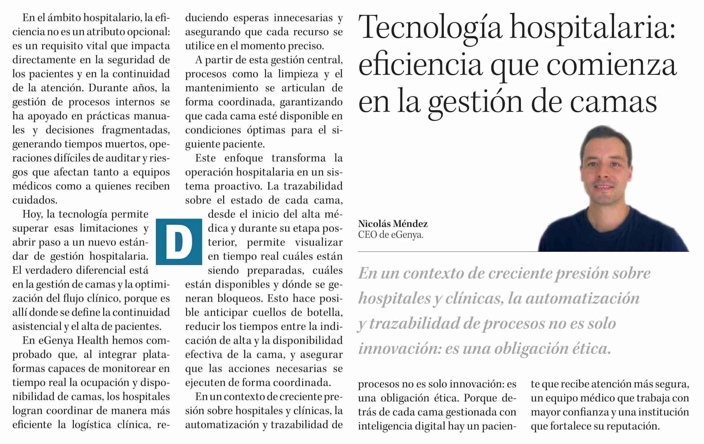 Columnas de Opinión: Tecnología hospitalaria: eficiencia que comienza en la gestión de camas