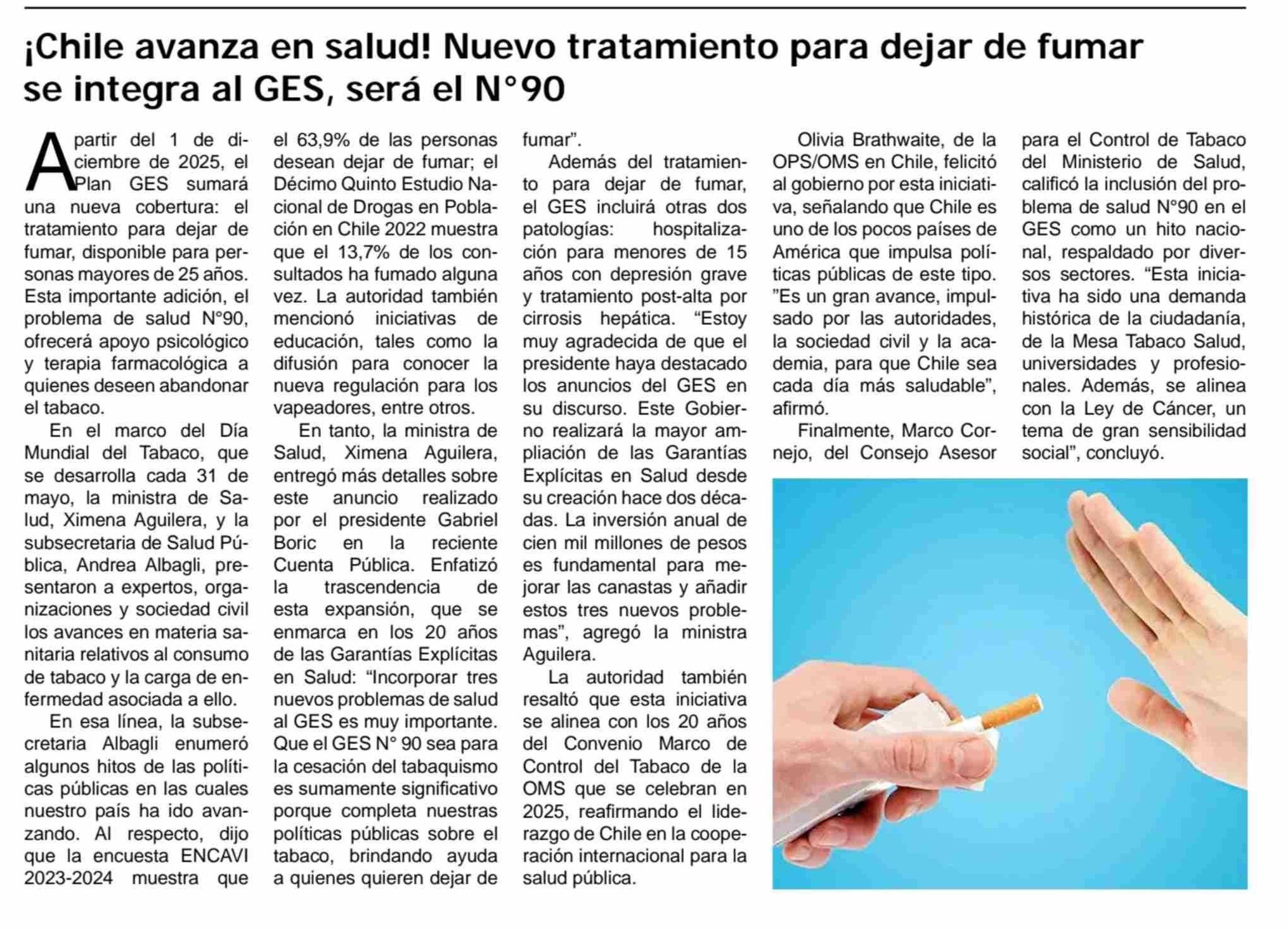 Título: ¡Chile avanza en salud! Nuevo tratamiento para dejar de fumar se integra al GES, será el N°90