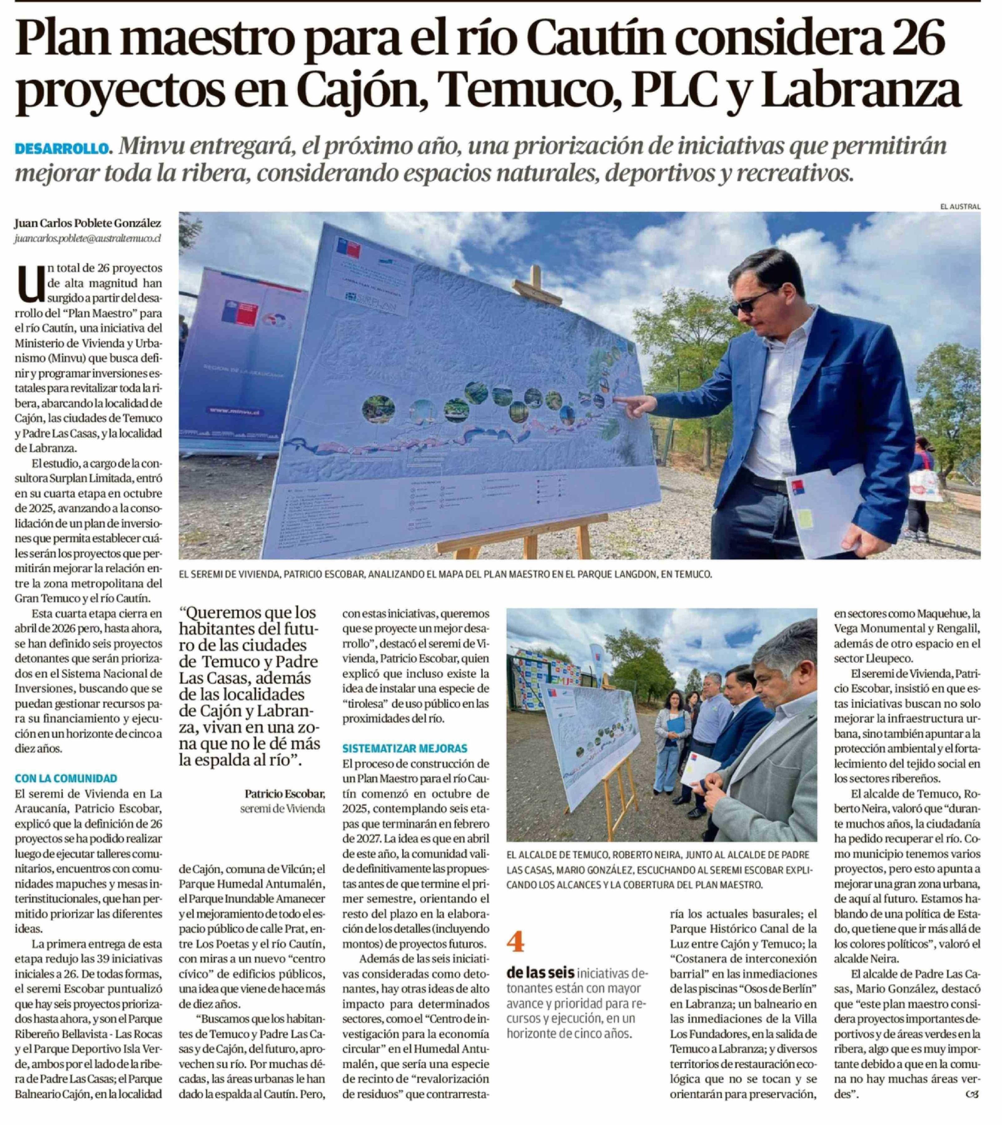 Plan maestro para el río Cautín considera 26 proyectos en Cajón, Temuco, PLC y Labranza