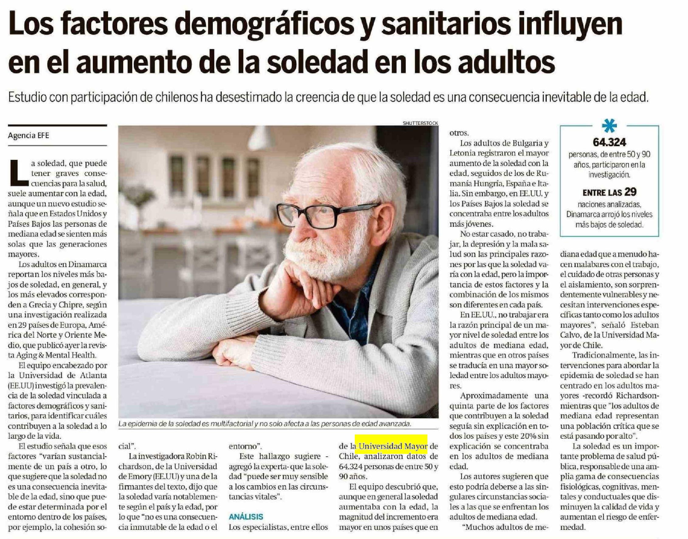 Los factores demográficos y sanitarios influyen en el aumento de la soledad en los adultos