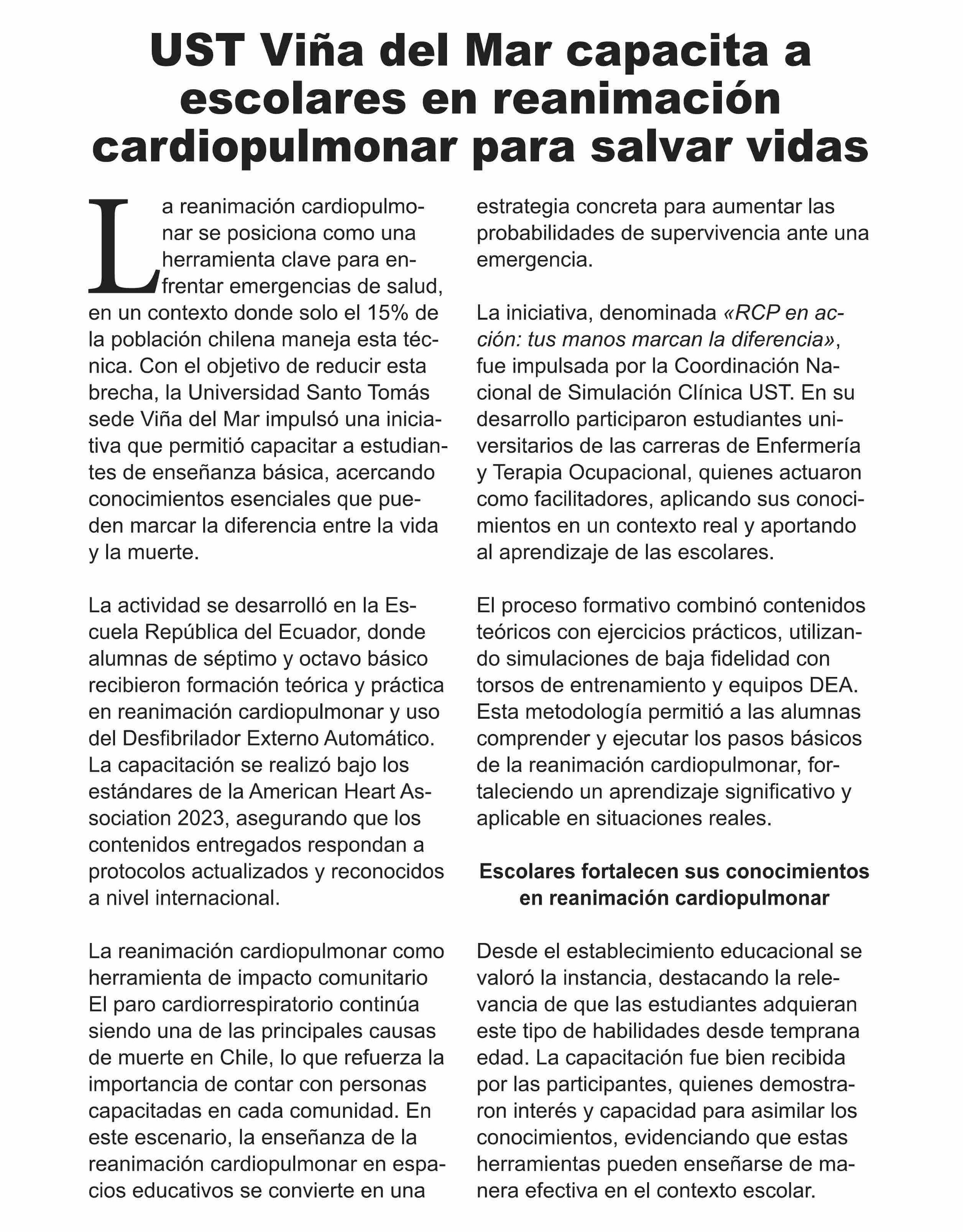 | Título: | UST Viña del Mar capacita a escolares en reanimación cardiopulmonar para salvar vidas |