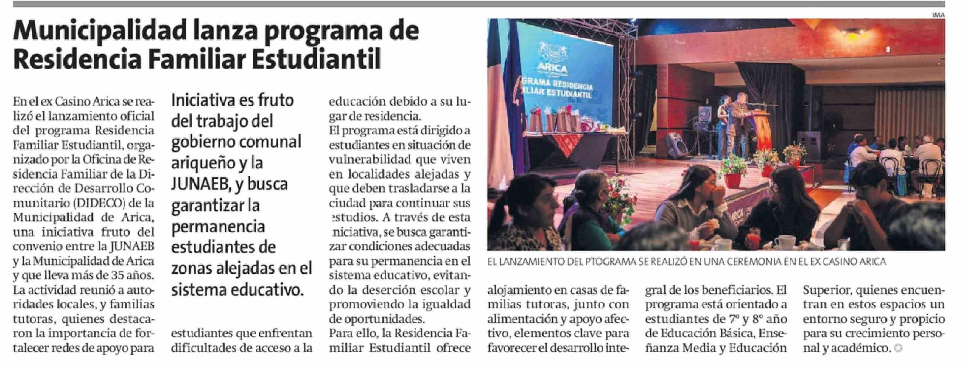 Municipalidad lanza programa de Residencia Familiar Estudiantil