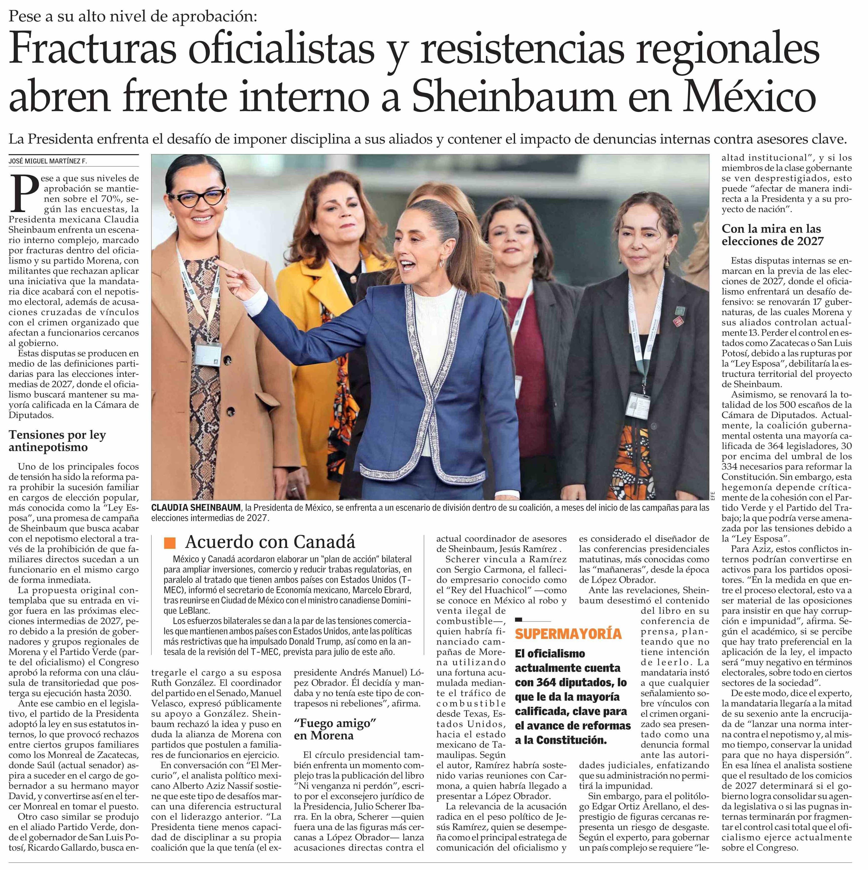 Fracturas oficialistas y resistencias regionales abren frente interno a Sheinbaum en México