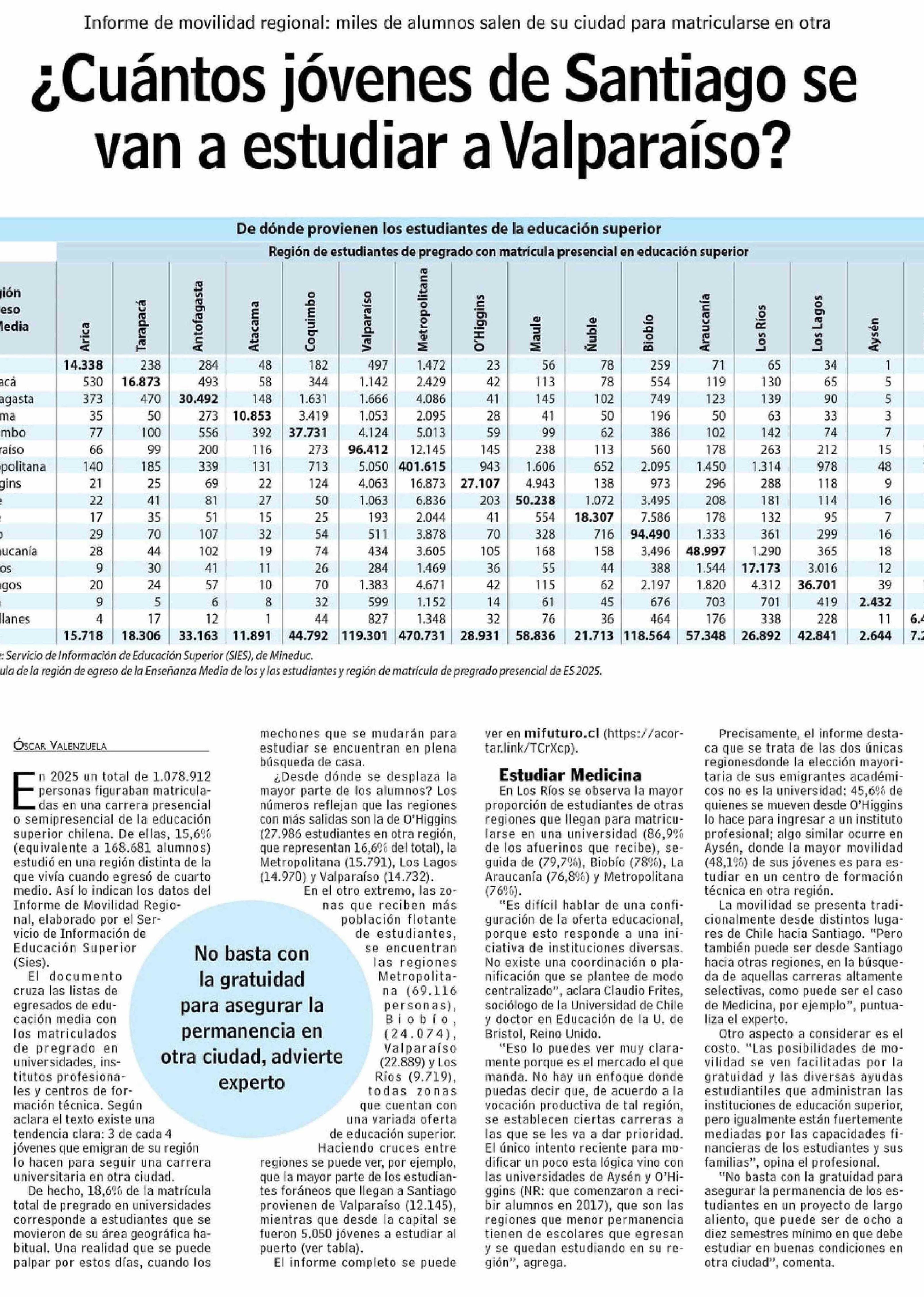 ¿Cuántos jóvenes de Santiago se van a estudiar a Valparaíso?