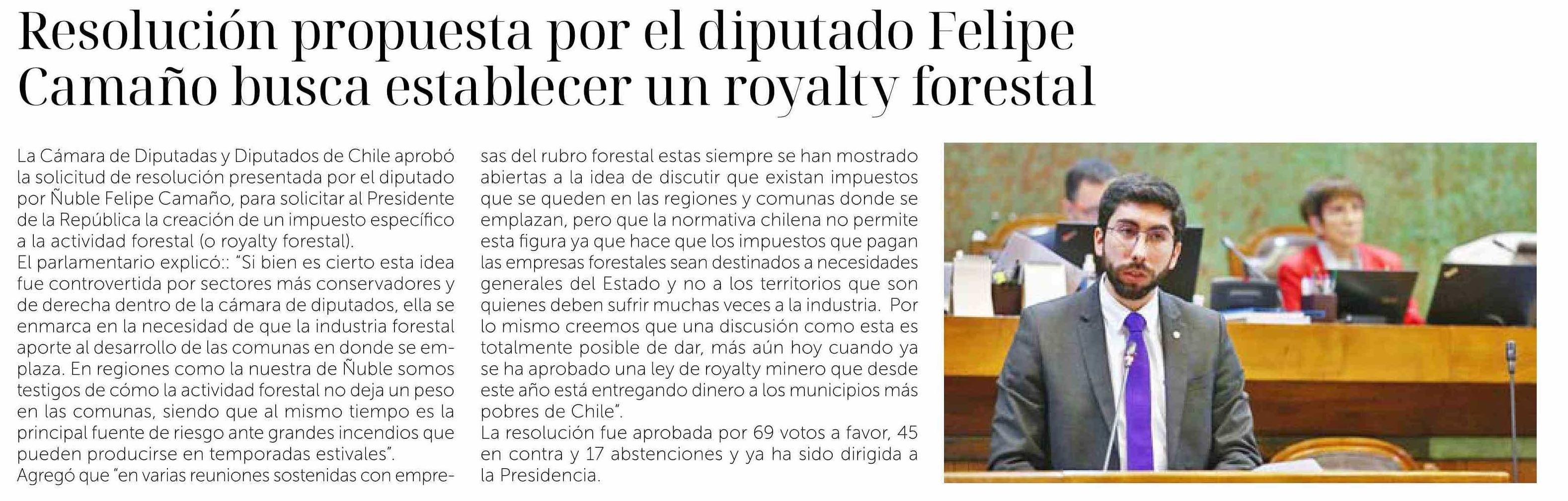 Resolución propuesta por el diputado Felipe Camaño busca establecer un royalty forestal