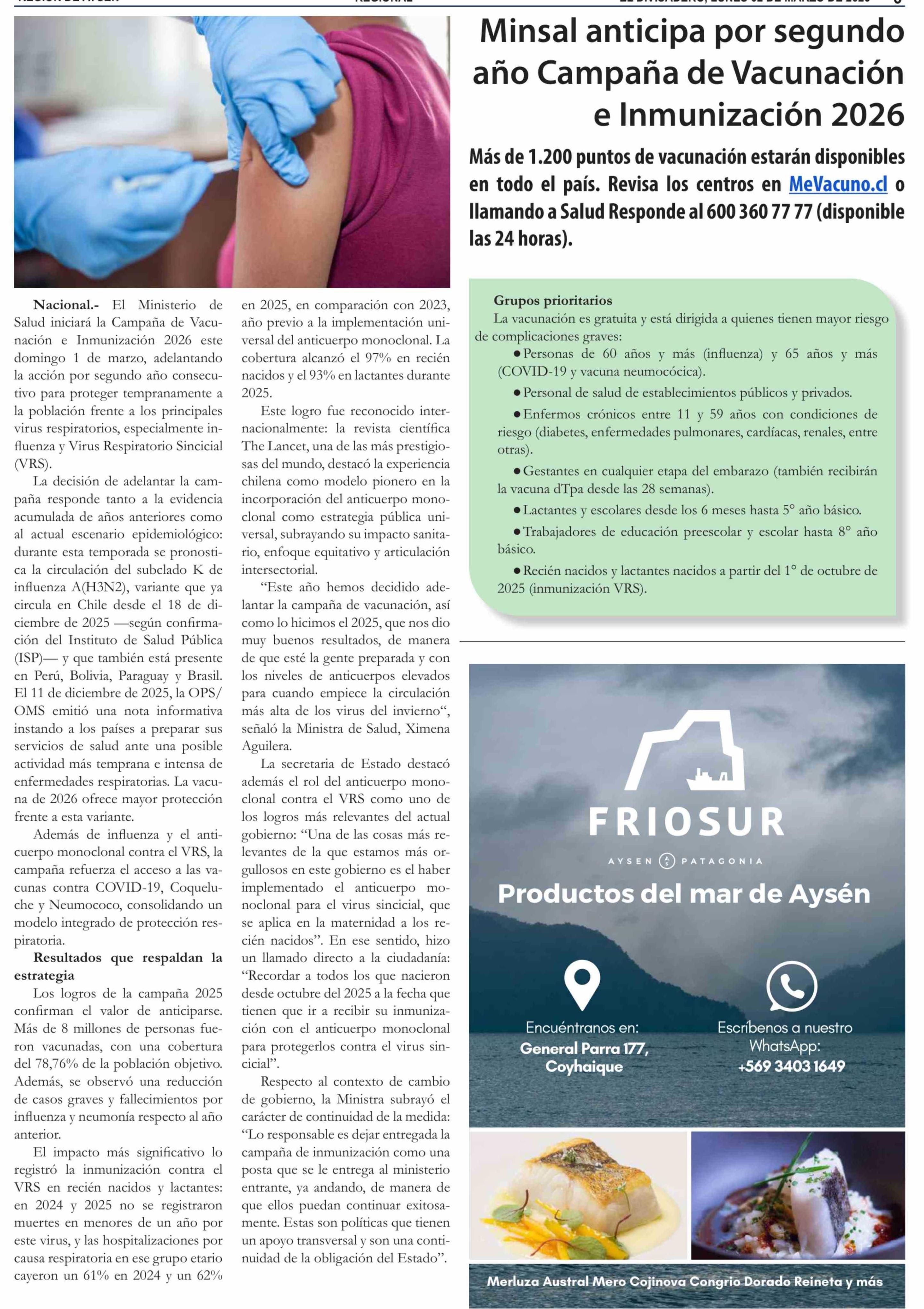 Título: Minsal anticipa por segundo año Campaña de Vacunación e Inmunización 2026