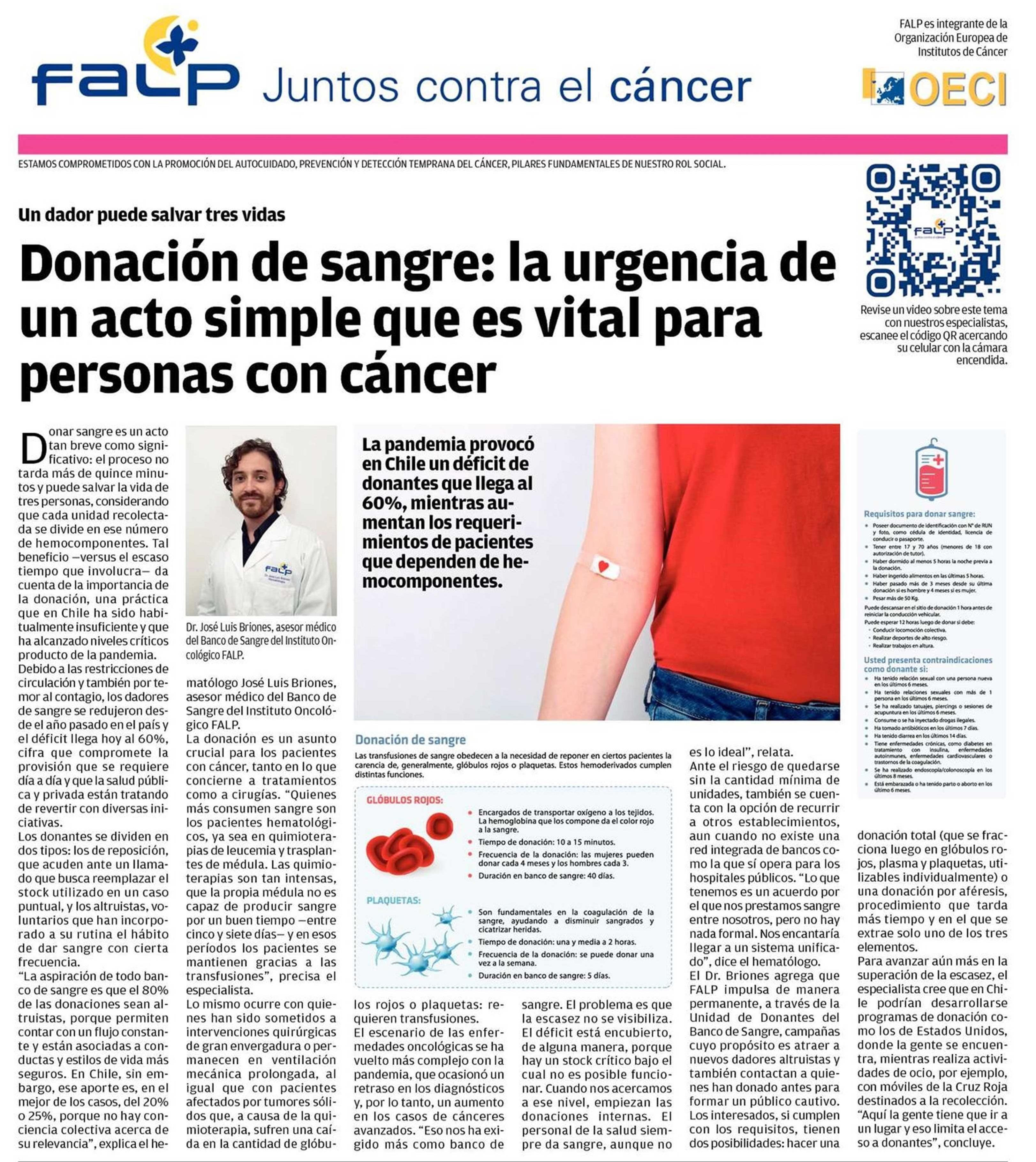 Donación de sangre: la urgencia de un acto simple que es vital para personas con cáncer