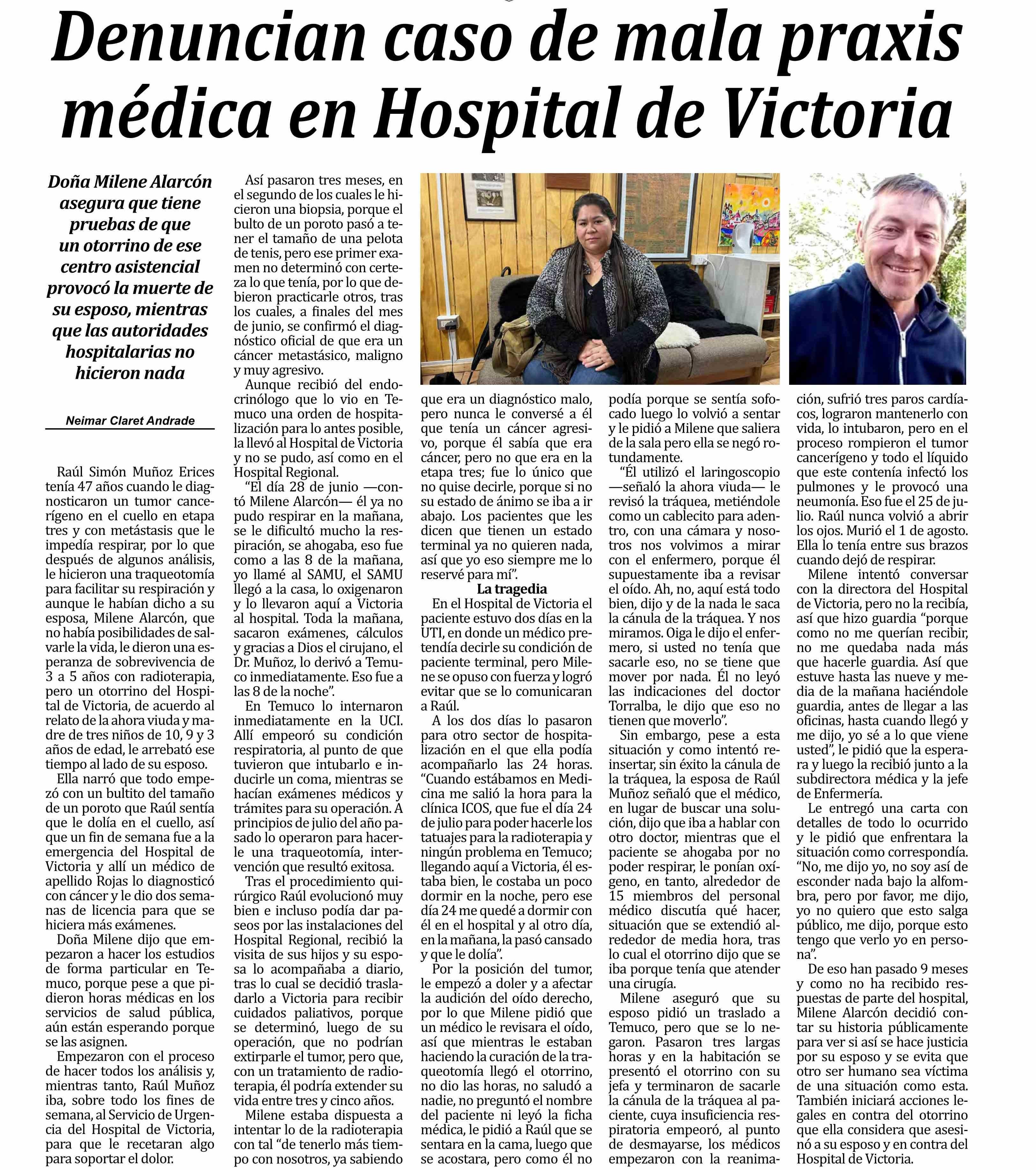 Denuncian caso de mala praxis médica en Hospital de Victoria