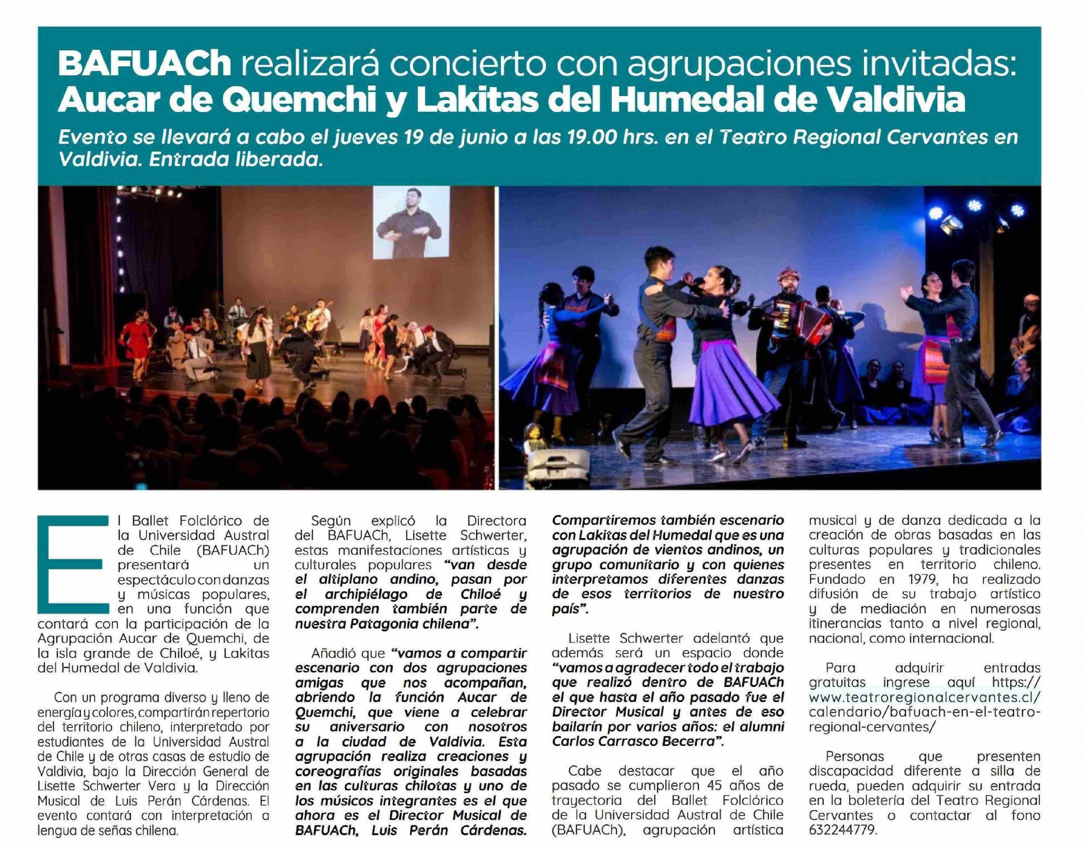 BAFUACH realizará concierto con agrupaciones invitadas: Aucar de Quemchi y Lakitas del Humedal de Valdivia