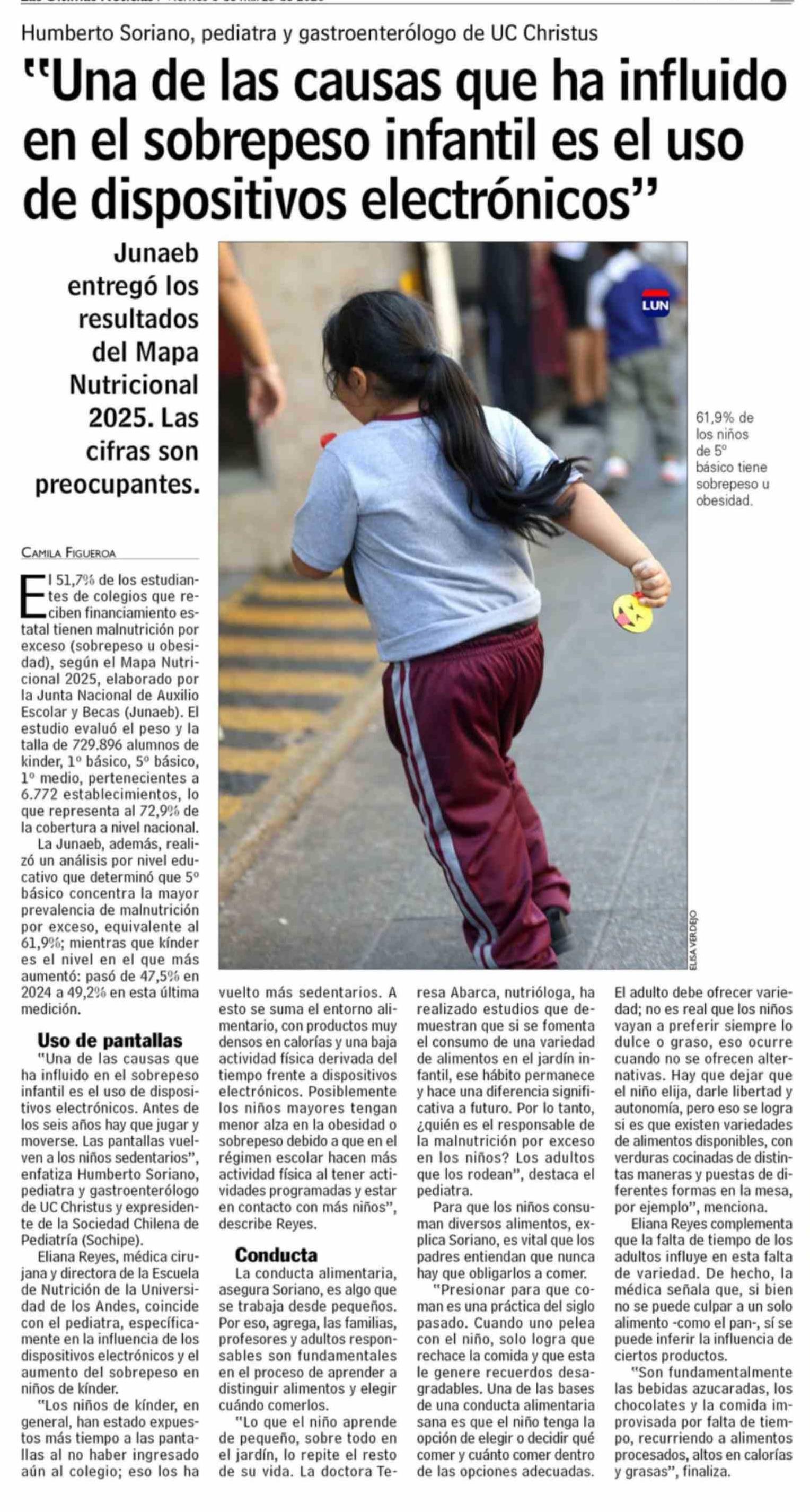 "Una de las causas que ha influido en el sobrepeso infantil es el uso de dispositivos electrónicos"