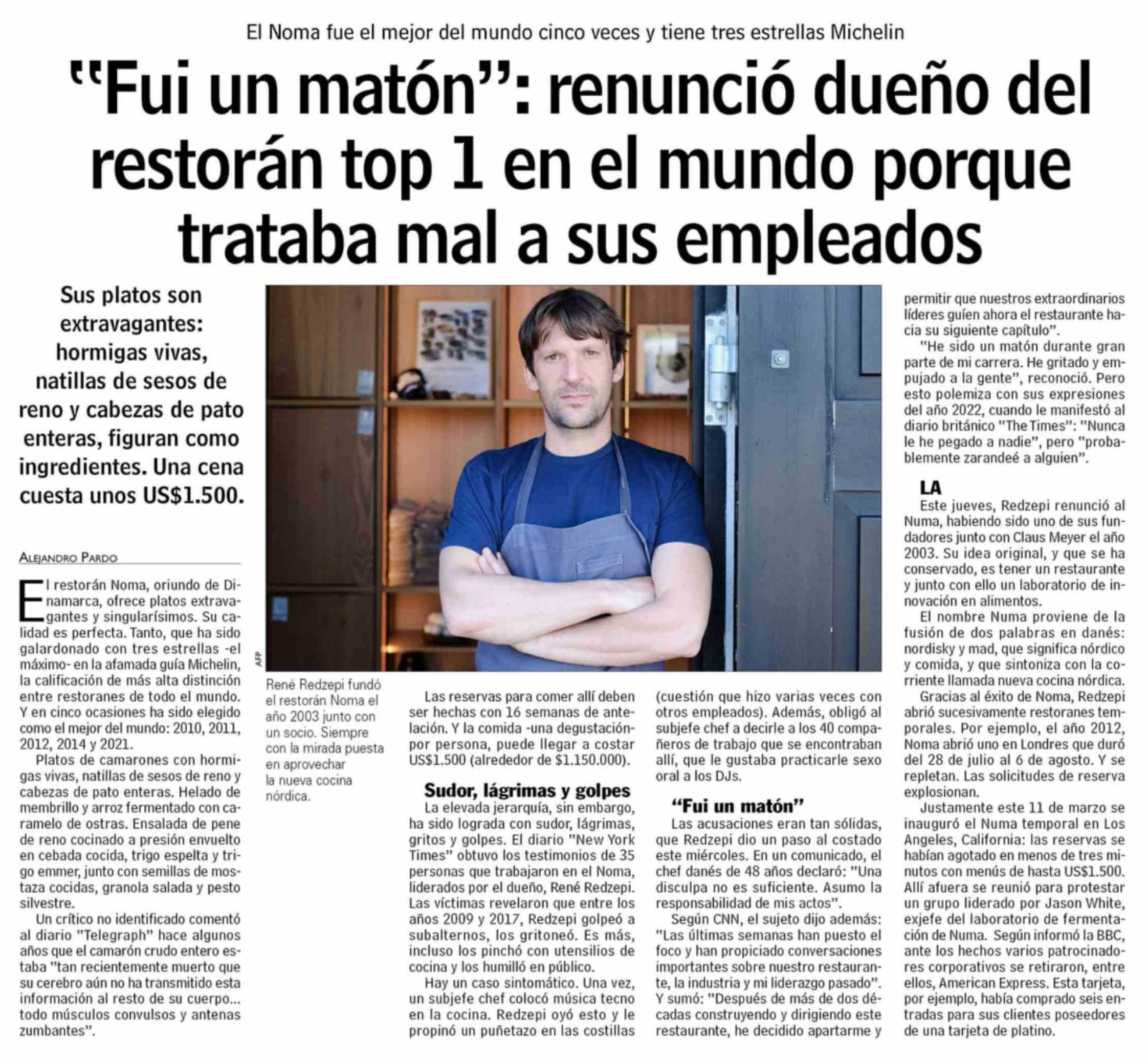 "Fui un matón": renunció dueño del restoran top 1 en el mundo porque trataba mal a sus empleados