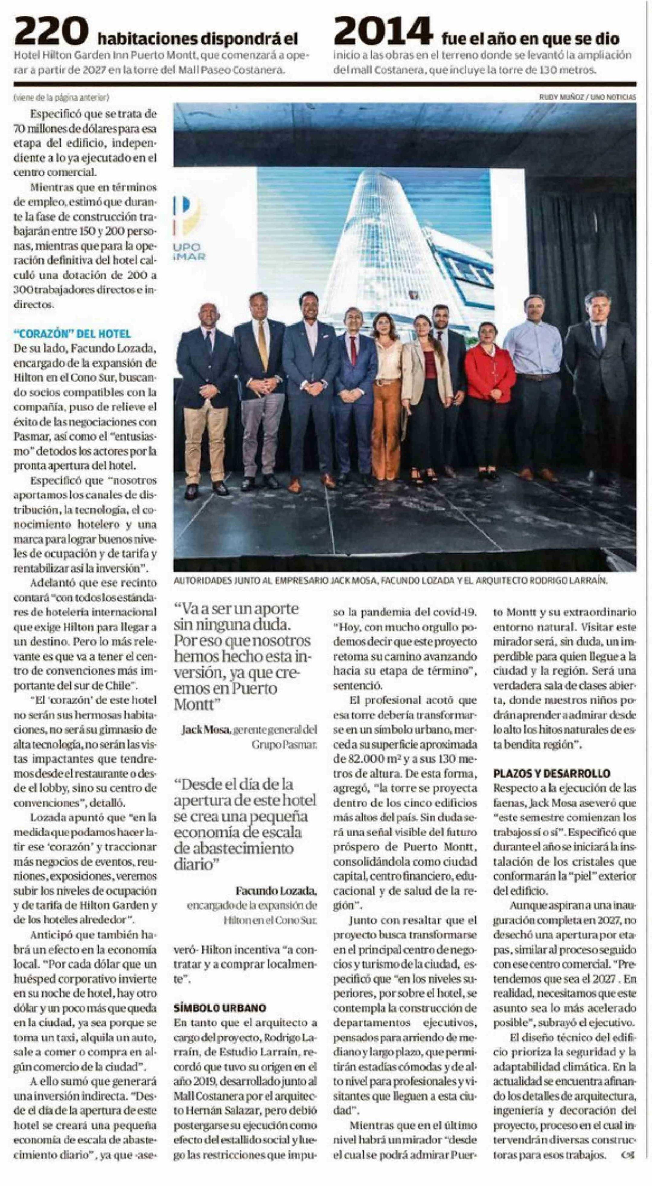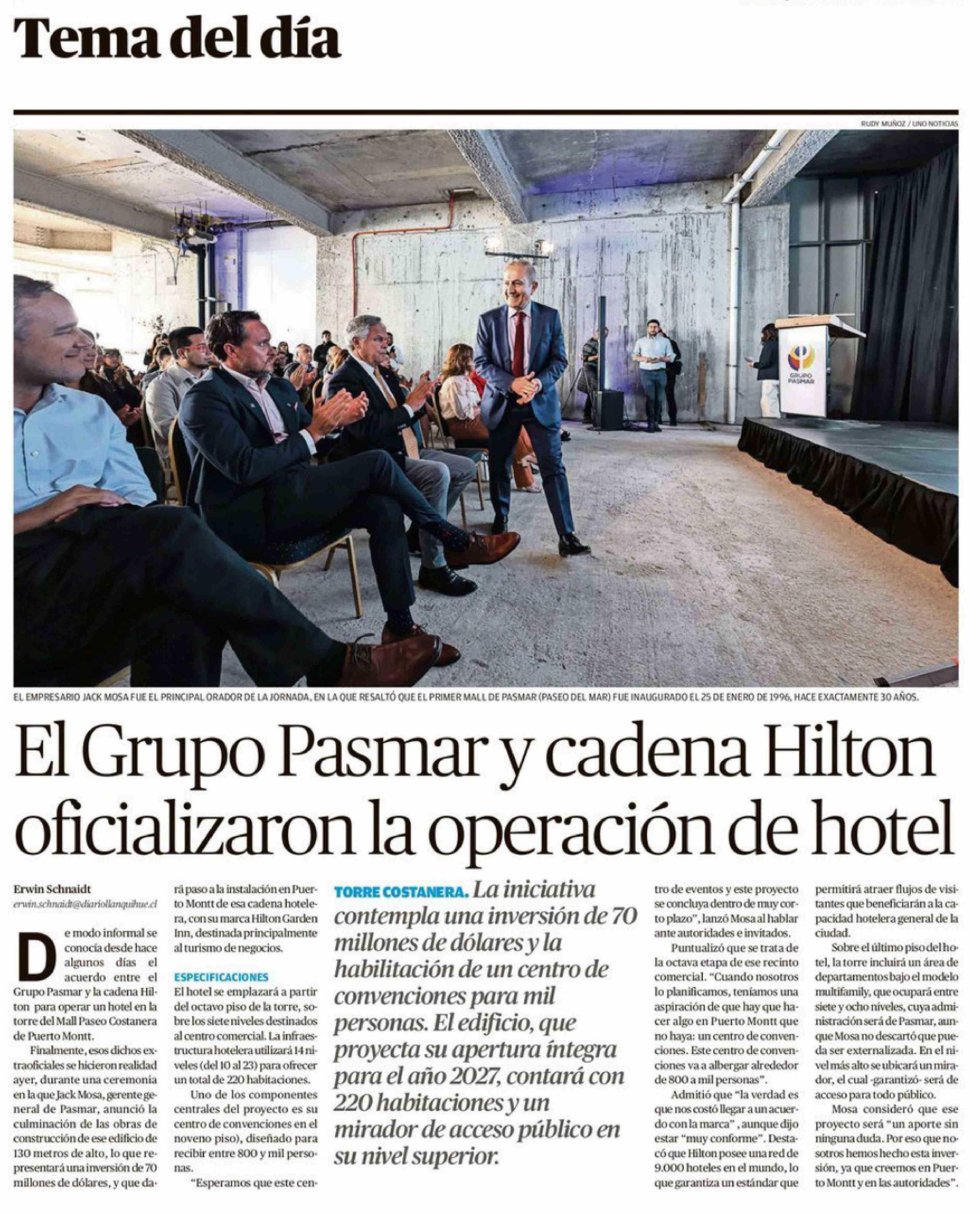 El Grupo Pasmar y cadena Hilton oficializaron la operación de hotel