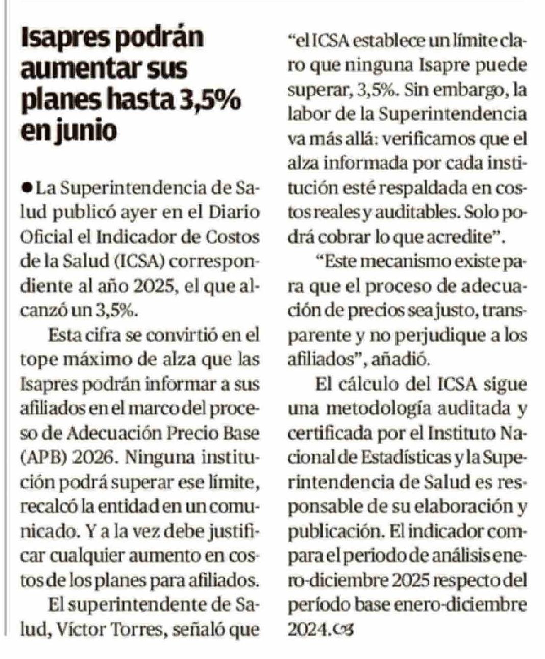 Isapres podrán aumentar sus planes hasta 3,5% en junio