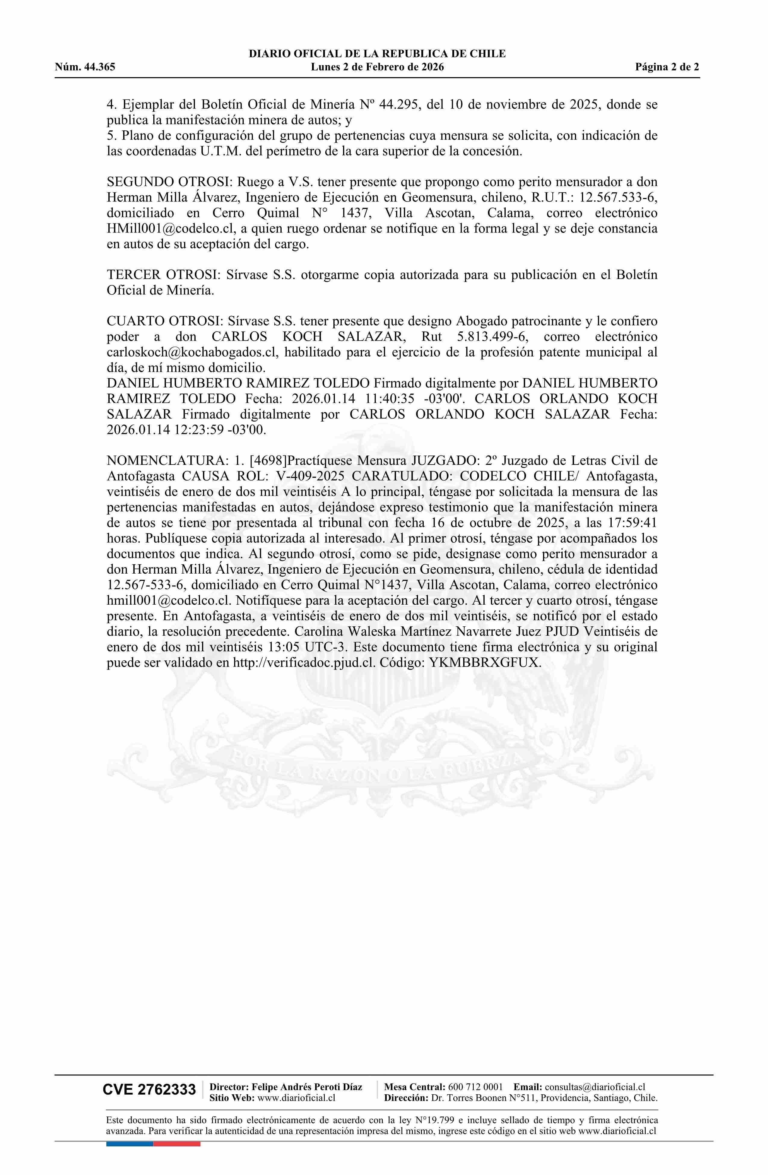 DIARIO OFICIAL CHILE - BOLETÍN OFICIAL DE MINERÍA (DIARIO OFICIAL CHILE – BOM – SOLICITUDES DE MENSUR)