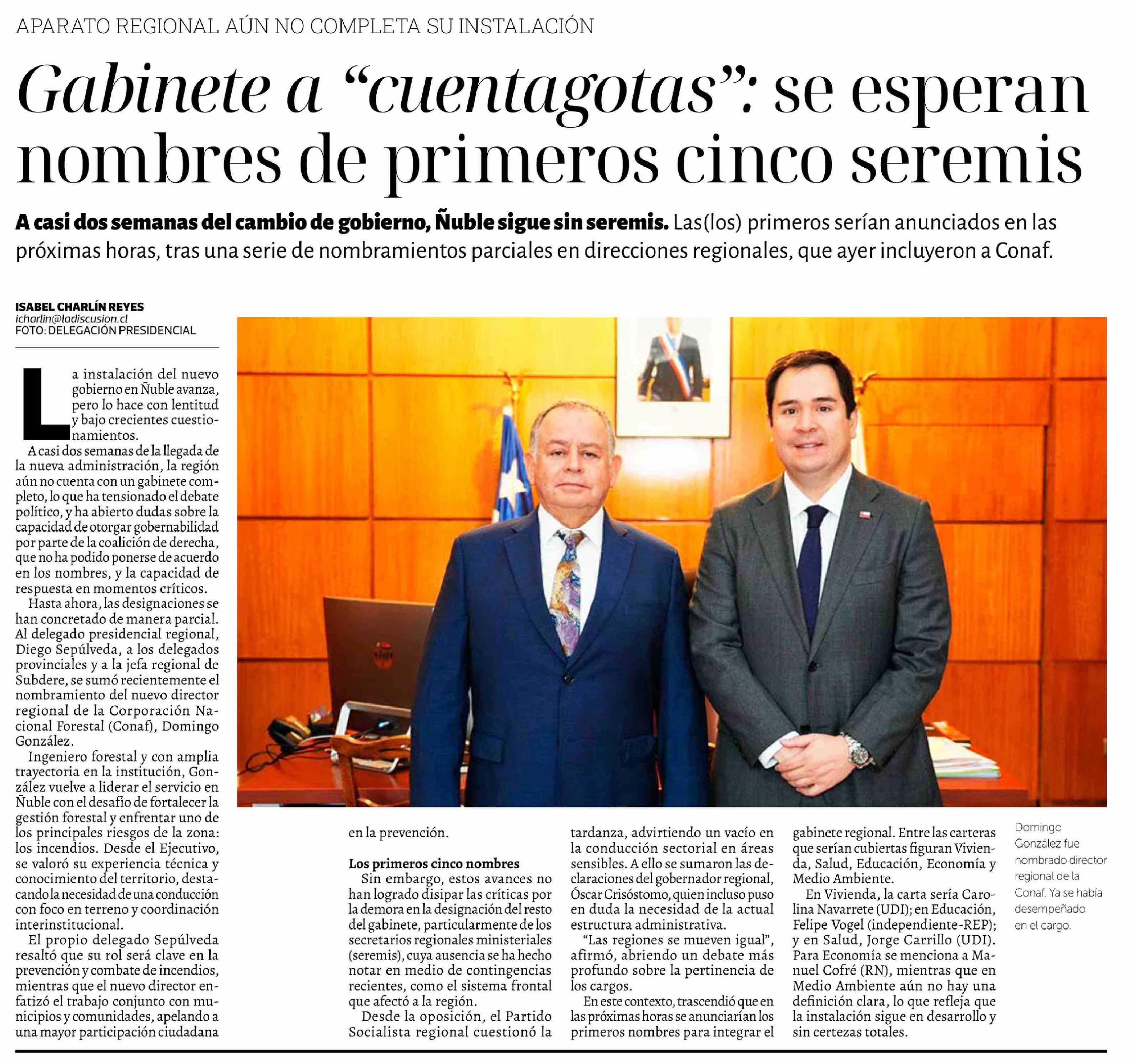 Gabinete a "cuentagotas": se esperan nombres de primeros cinco seremis