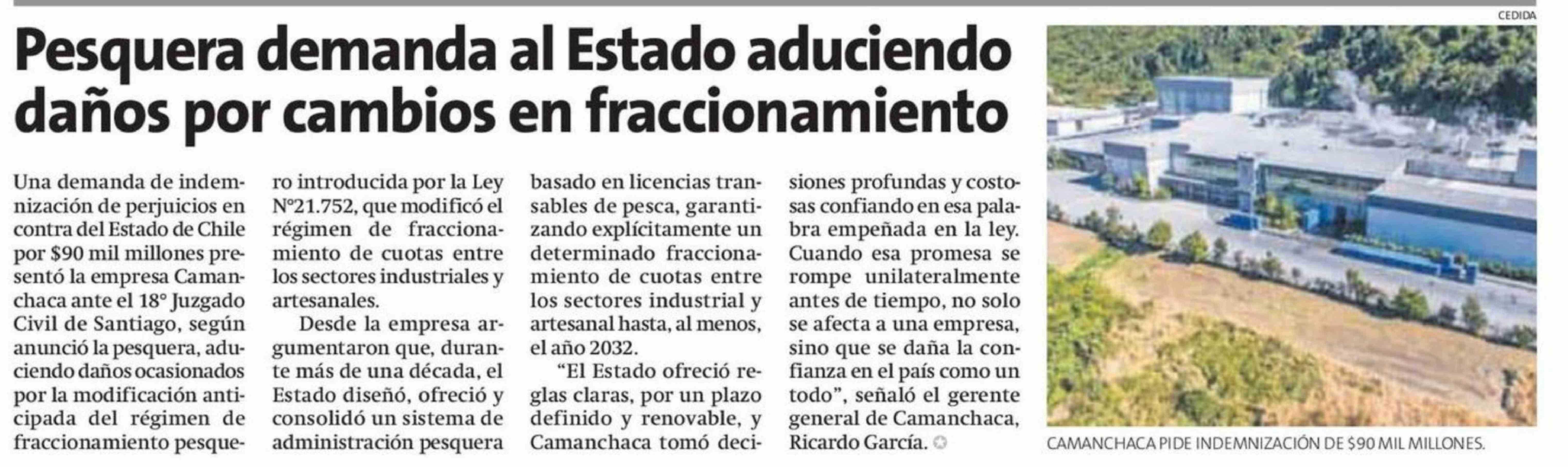 Pesquera demanda al Estado aduciendo daños por cambios en fraccionamiento