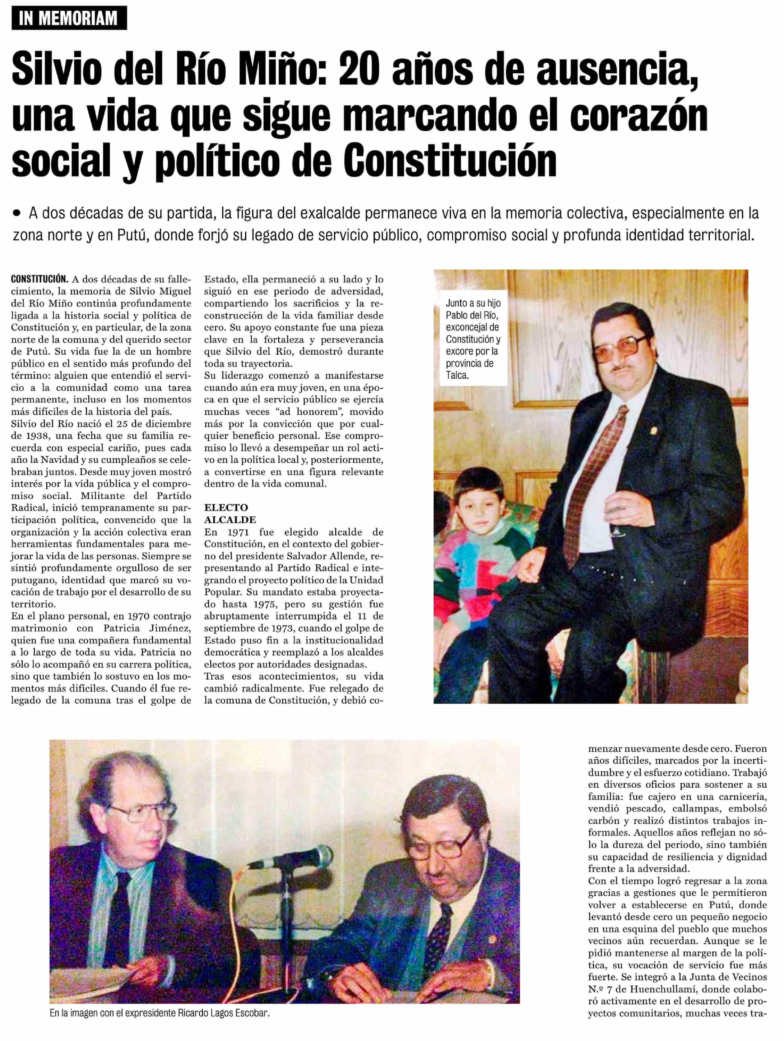 Silvio del Río Miño: 20 años de ausencia, una vida que sigue marcando el corazón social y político de Constitución