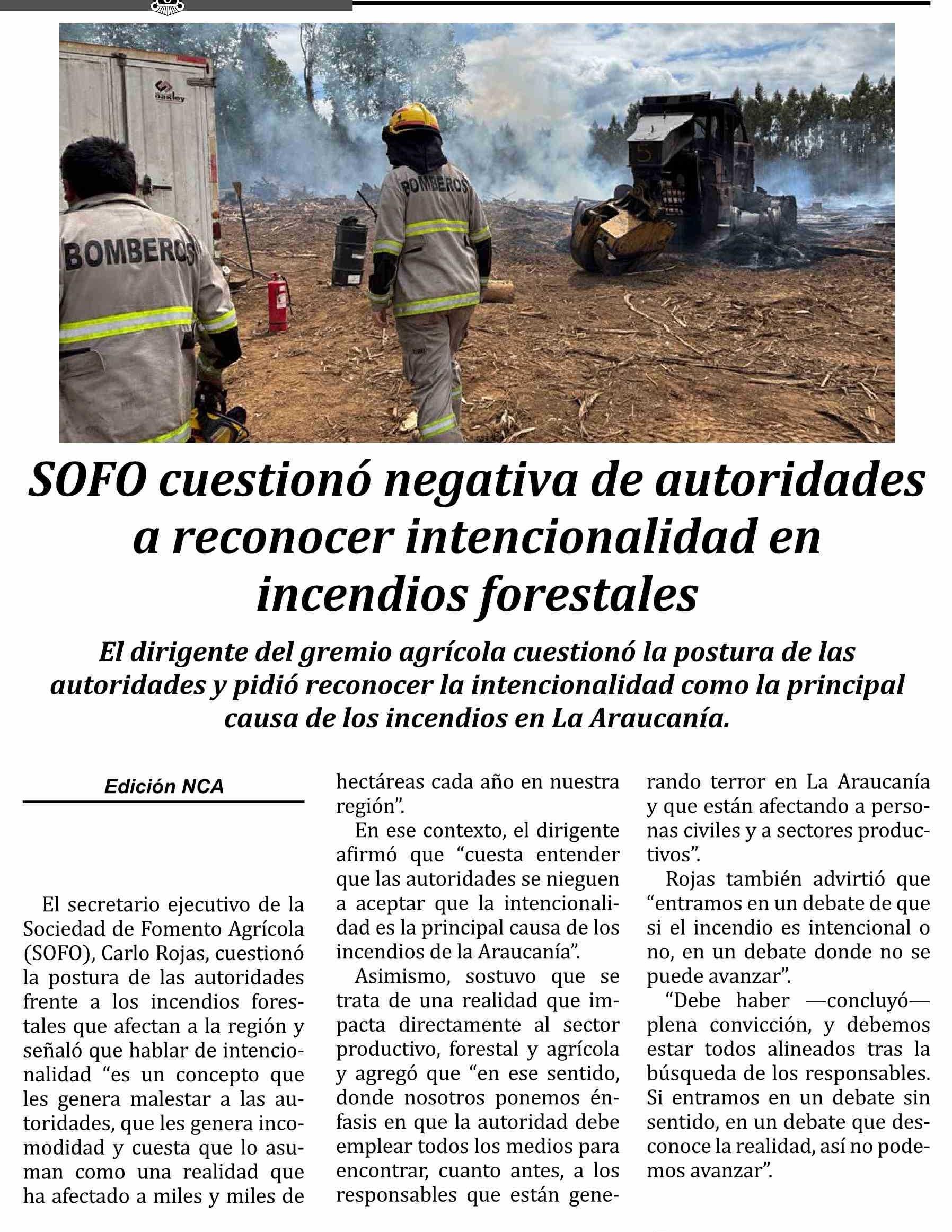 SOFO cuestionó negativa de autoridades a reconocer intencionalidad en incendios forestales