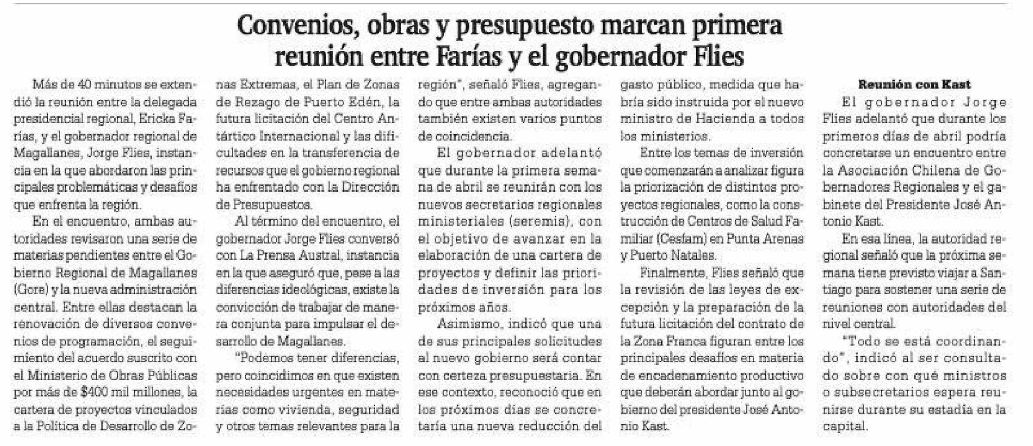 Convenios, obras y presupuesto marcan primera reunión entre Farías y el gobernador Flies