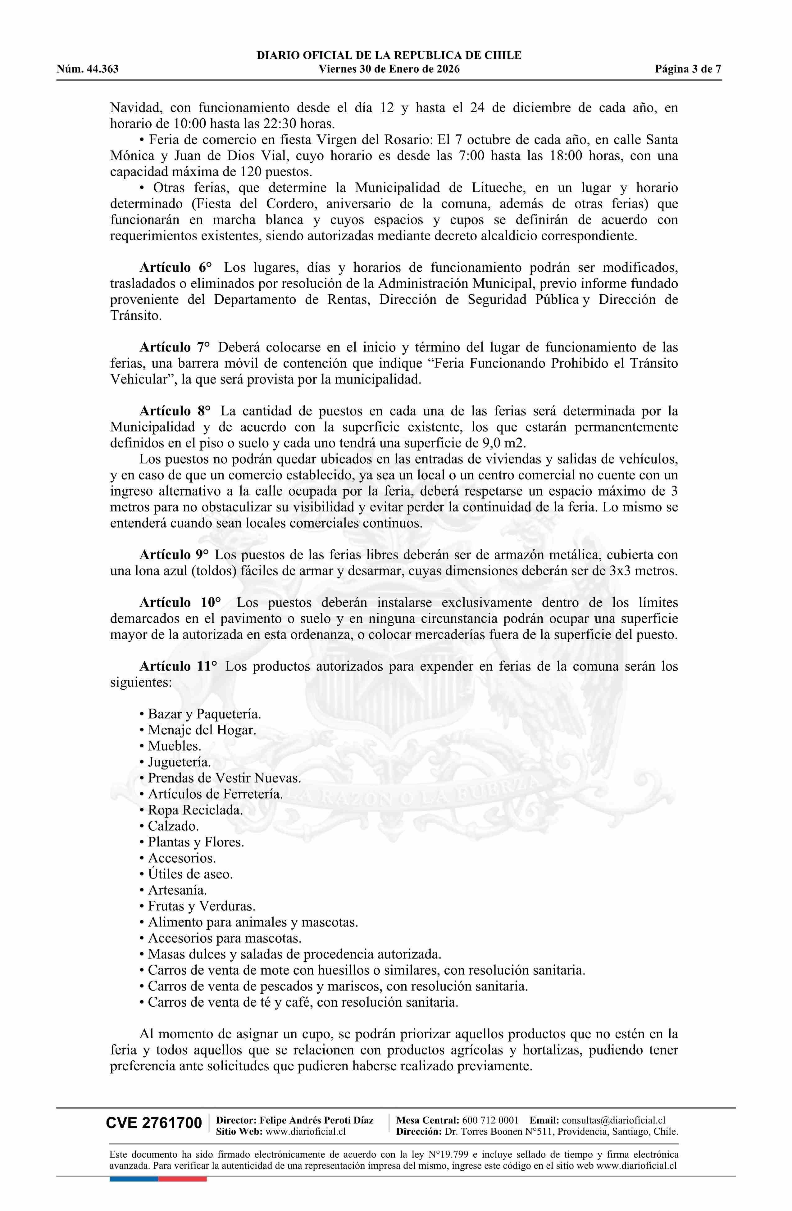 | Título: | Decreto alcaldicio número 123, de 2026.- Aprueba Ordenanza de Ferias Libres, Comercio Ambulante y Uso de Espacios Públicos |