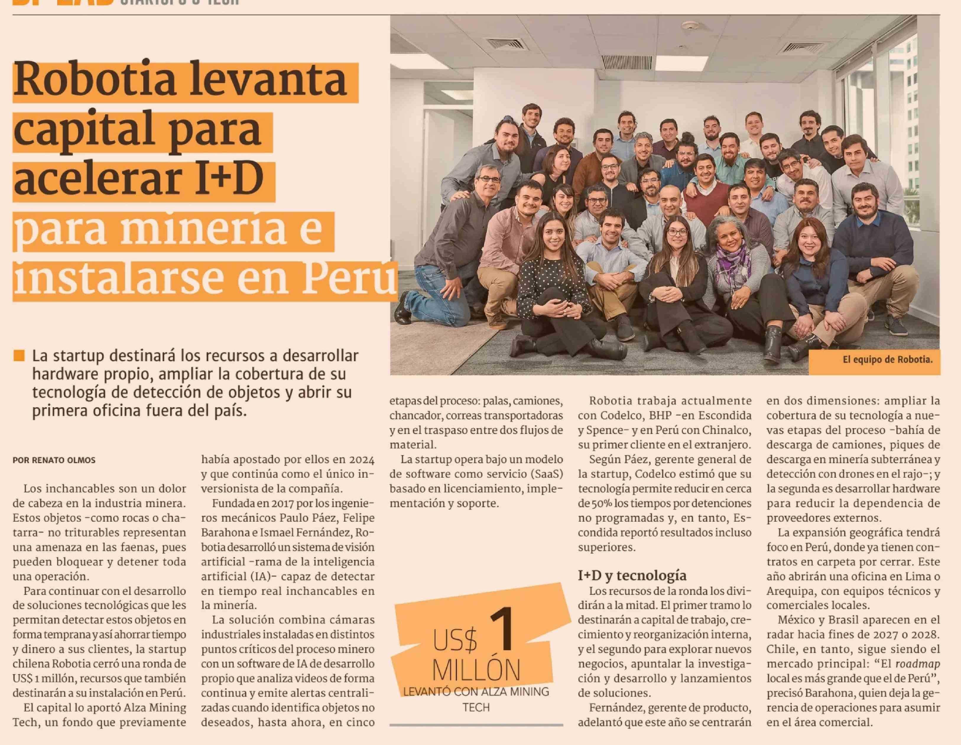 Robotia levanta capital para acelerar I+D para mineria e instalarse en Peru