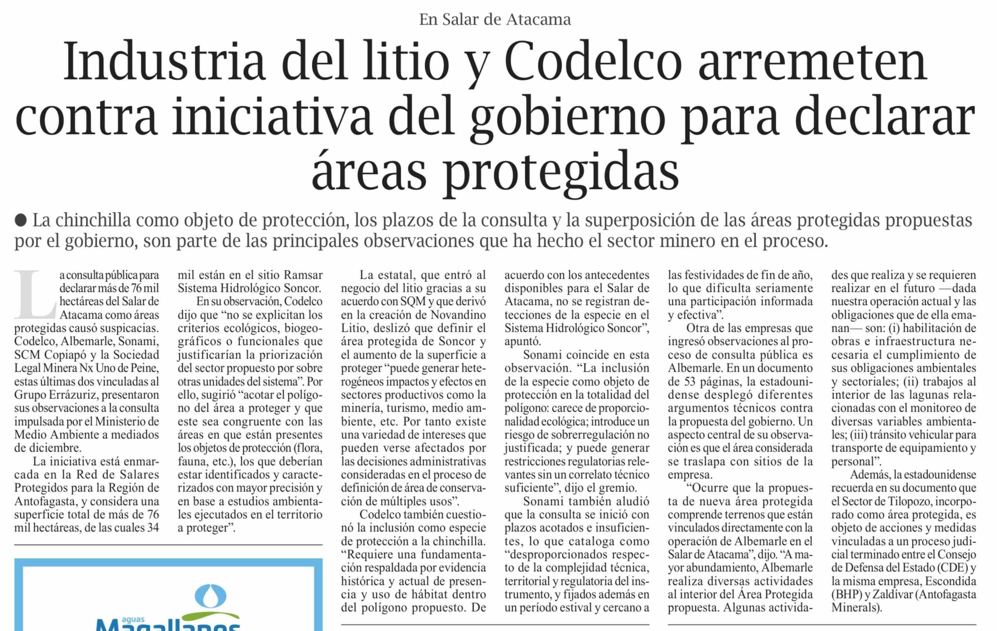 Industria del litio y Codelco arremeten contra iniciativa del gobierno para declarar áreas protegidas