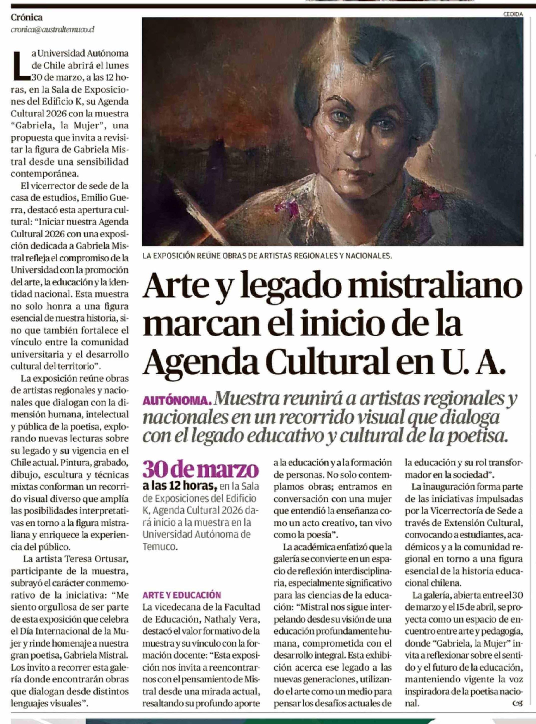 Arte y legado mistraliano marcan el inicio de la Agenda Cultural en U. A.