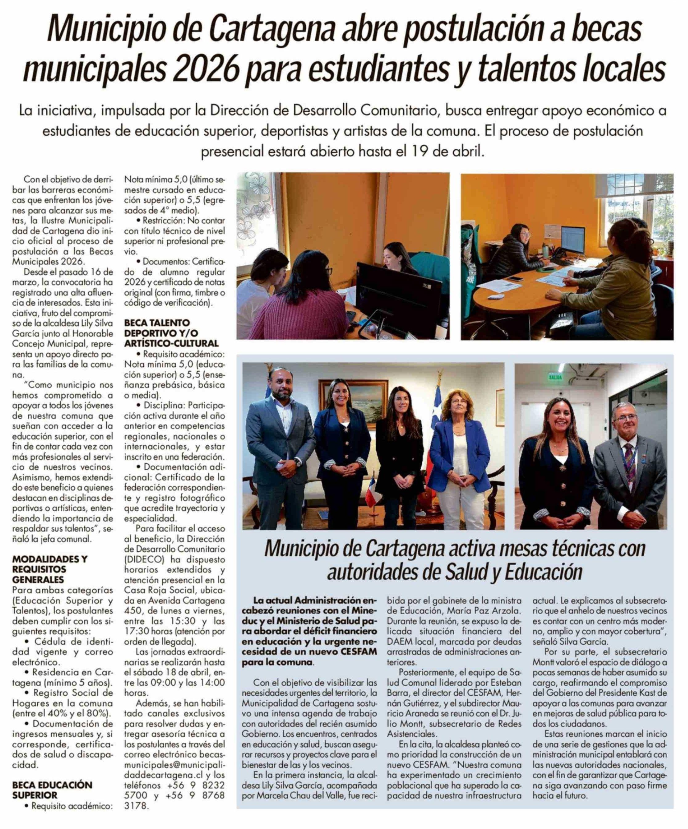 Municipio de Cartagena abre postulación a becas municipales 2026 para estudiantes y talentos locales
