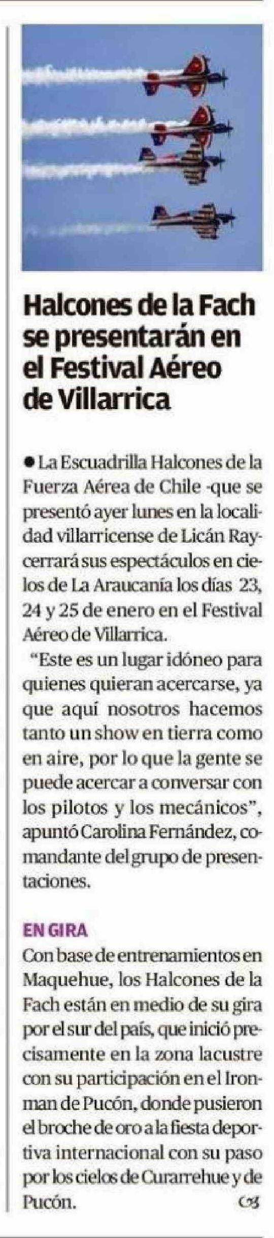 Halcones de la Fach se presentarán en el Festival Aéreo de Villarrica