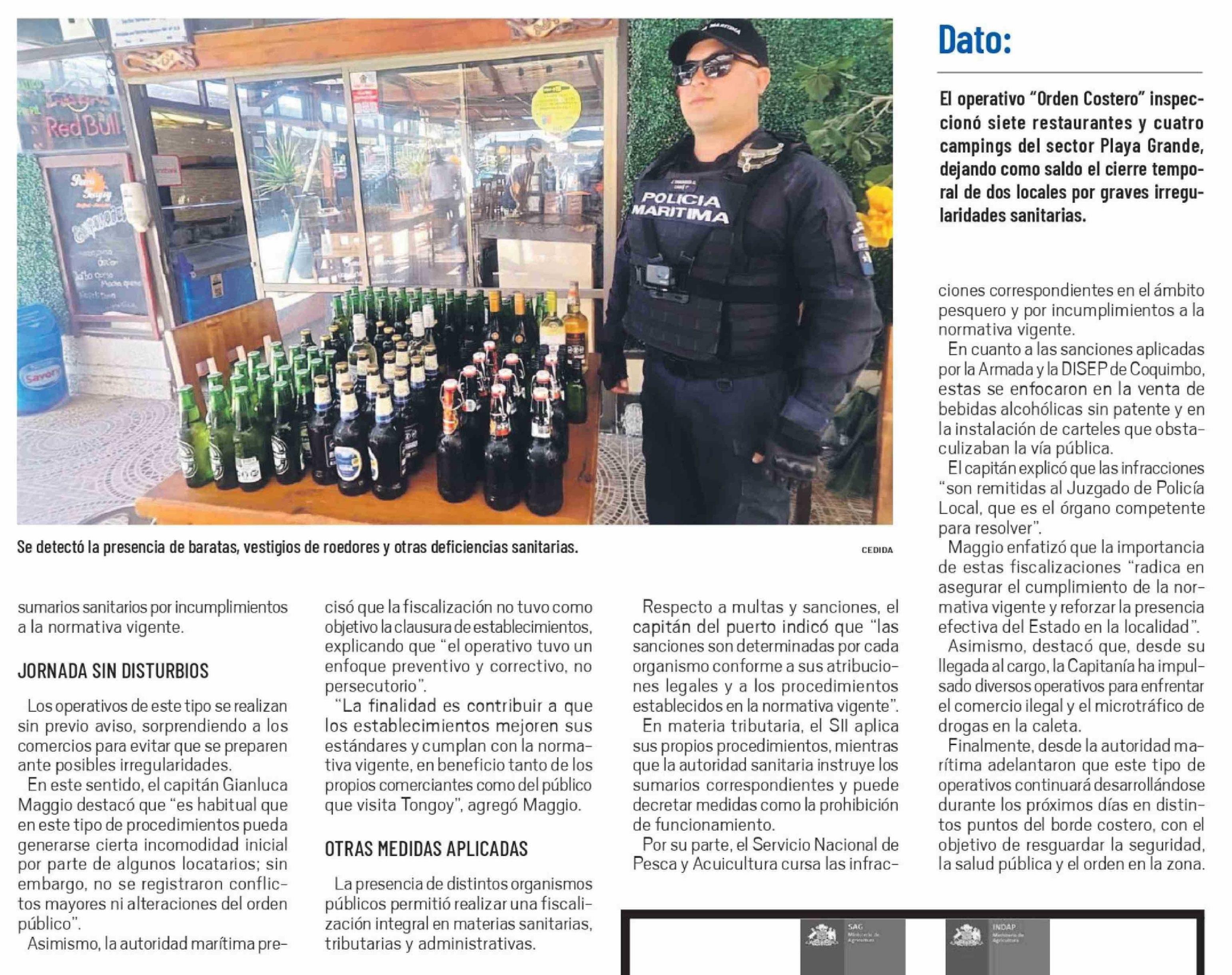 Clausuran dos restaurantes en balneario de Tongoy por deficiencias sanitarias