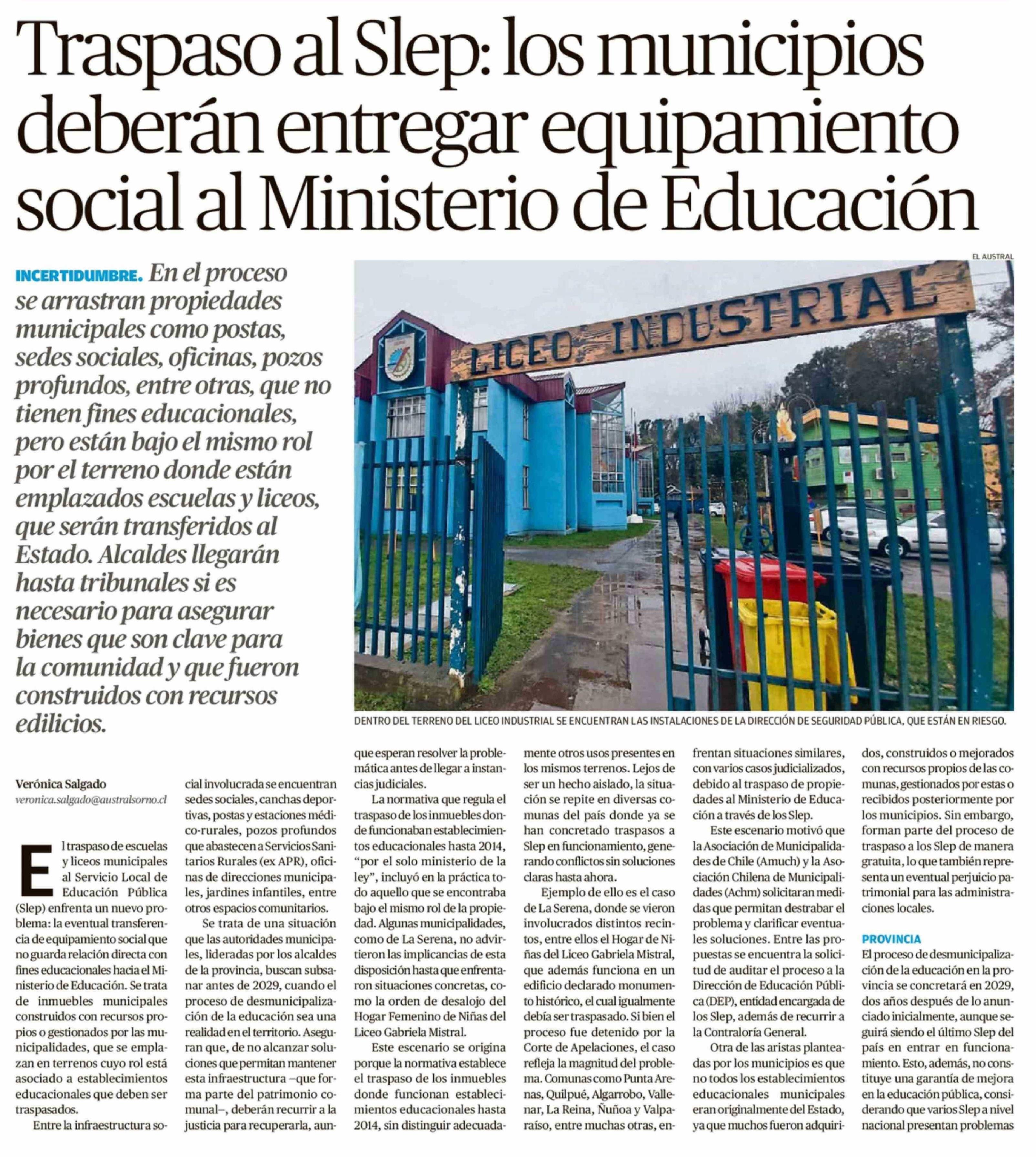 Traspaso al Slep: los municipios deberán entregar equipamiento social al Ministerio de Educación