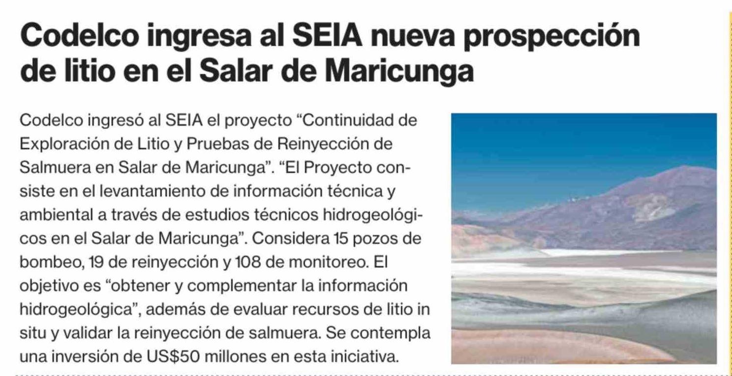 Codelco ingresa al SEIA nueva prospección de litio en el Salar de Maricunga