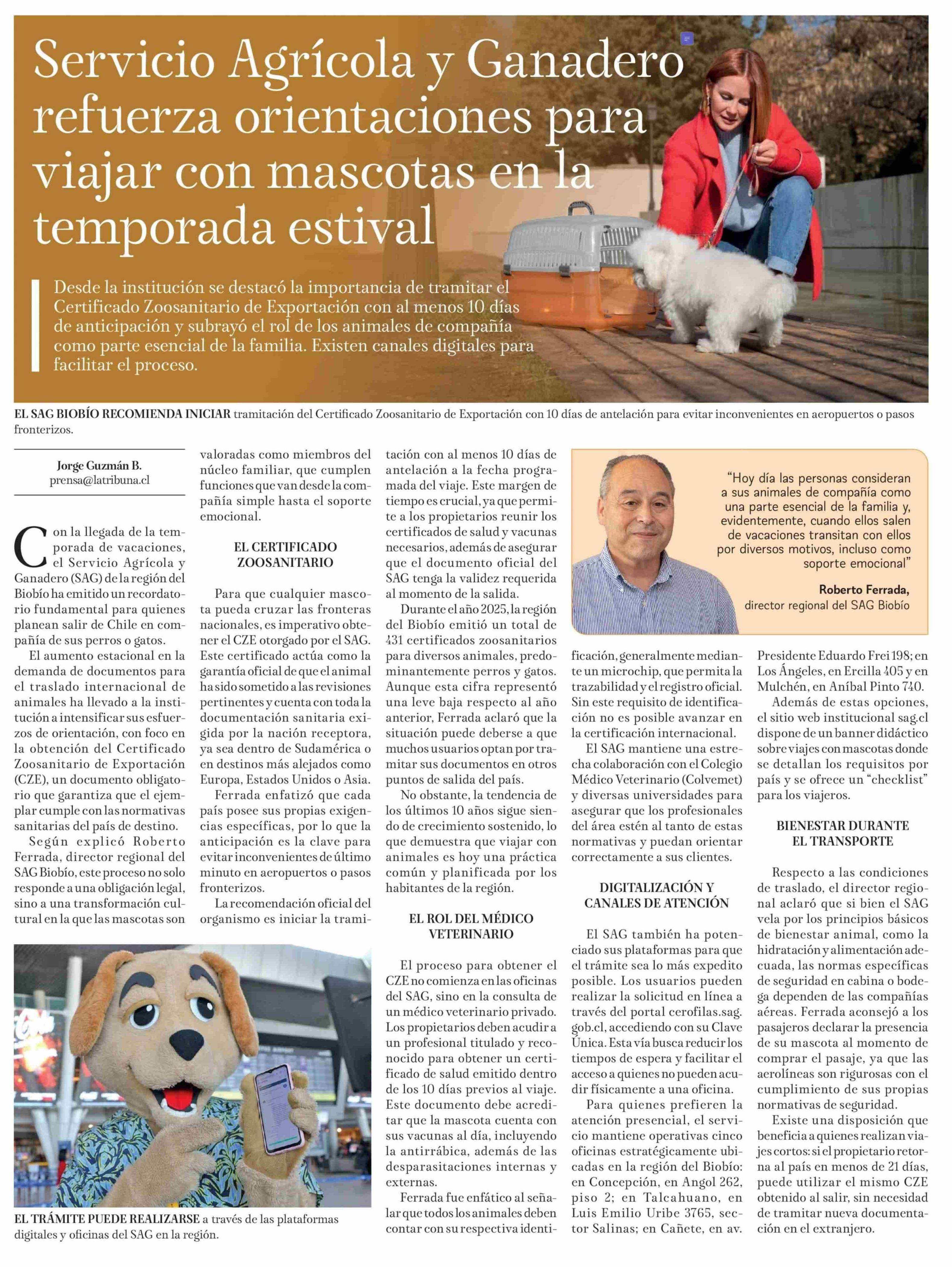 Servicio Agrícola y Ganadero refuerza orientaciones para viajar con mascotas en la temporada estival