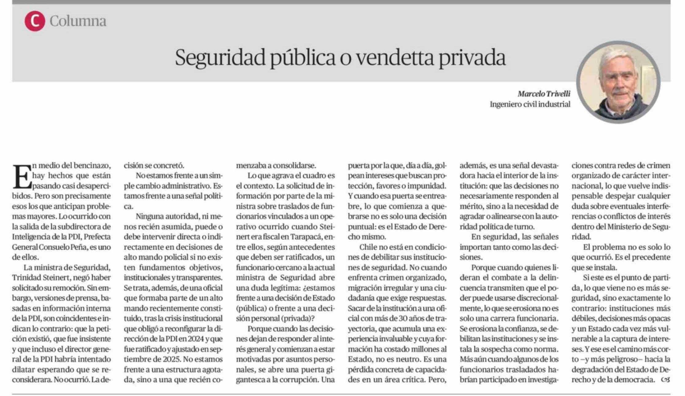 Columnas de Opinión: Seguridad pública o vendetta privada