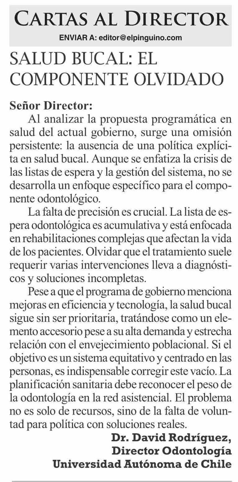 Cartas: Salud bucal: el componente olvidado