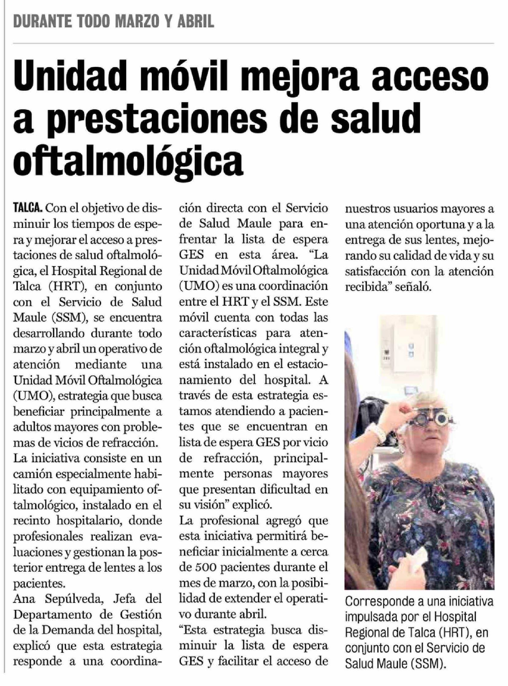 Unidad móvil mejora acceso a prestaciones de salud oftalmológica