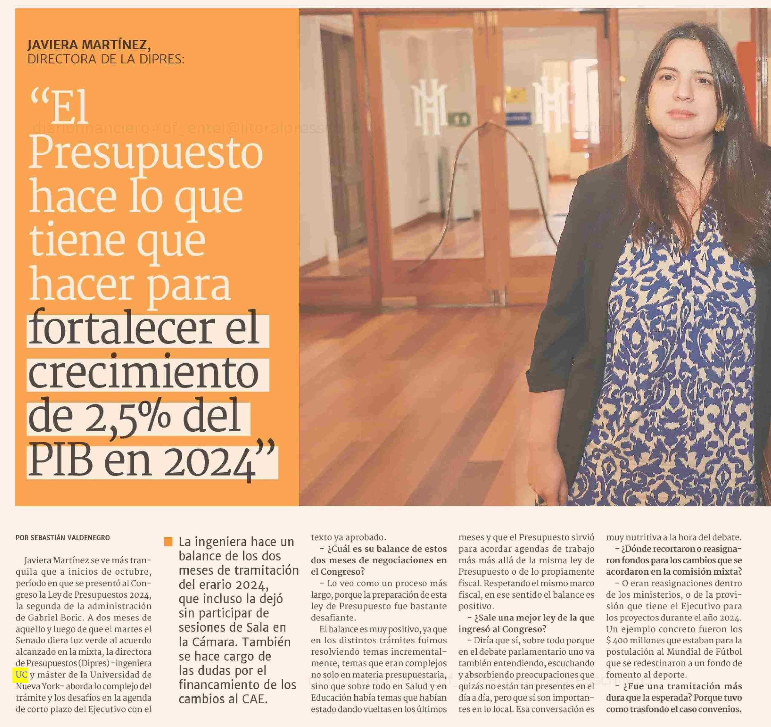 “El Presupuesto hace lo que tiene que hacer para fortalecer el crecimiento de 2,5% del PIB en 2024"