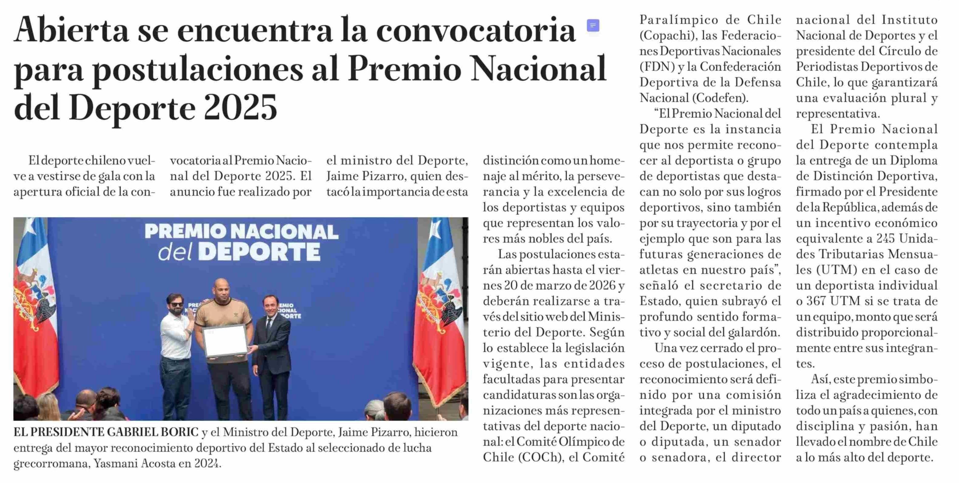 Abierta se encuentra la convocatoria para postulaciones al Premio Nacional del Deporte 2025