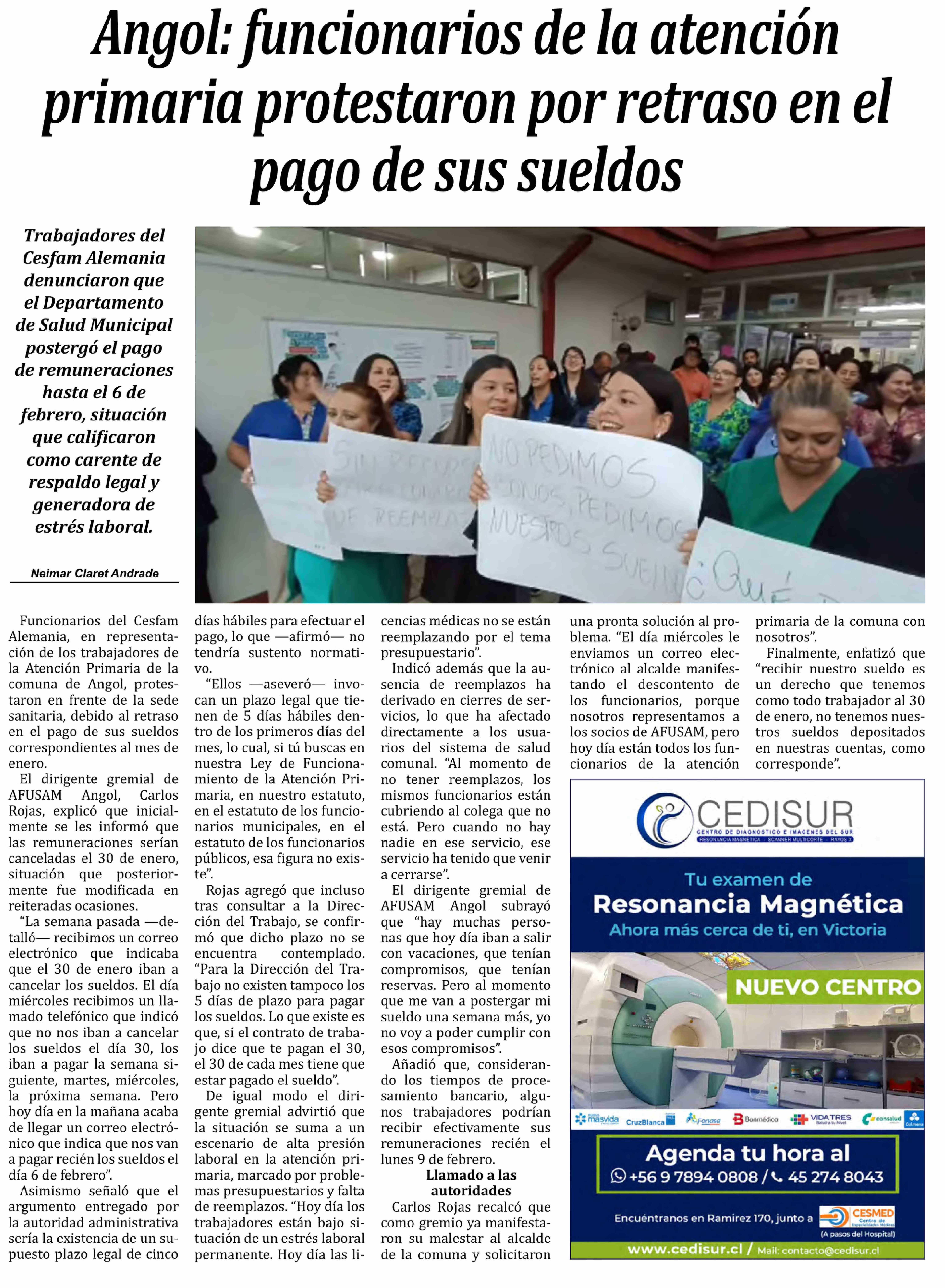 Angol: funcionarios de la atención primaria protestaron por retraso en el pago de sus sueldos