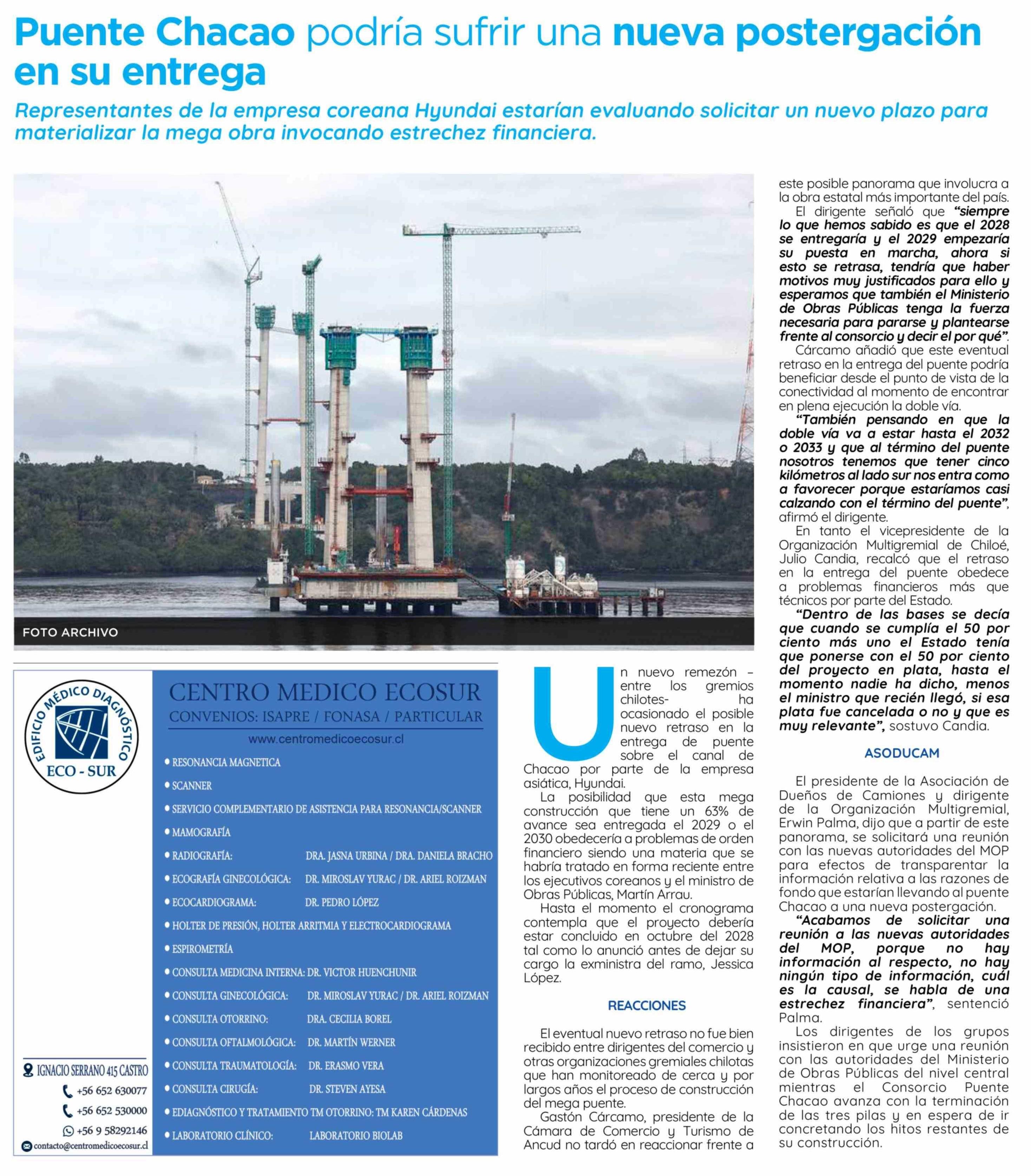 Puente Chacao podría sufrir una nueva postergación en su entrega