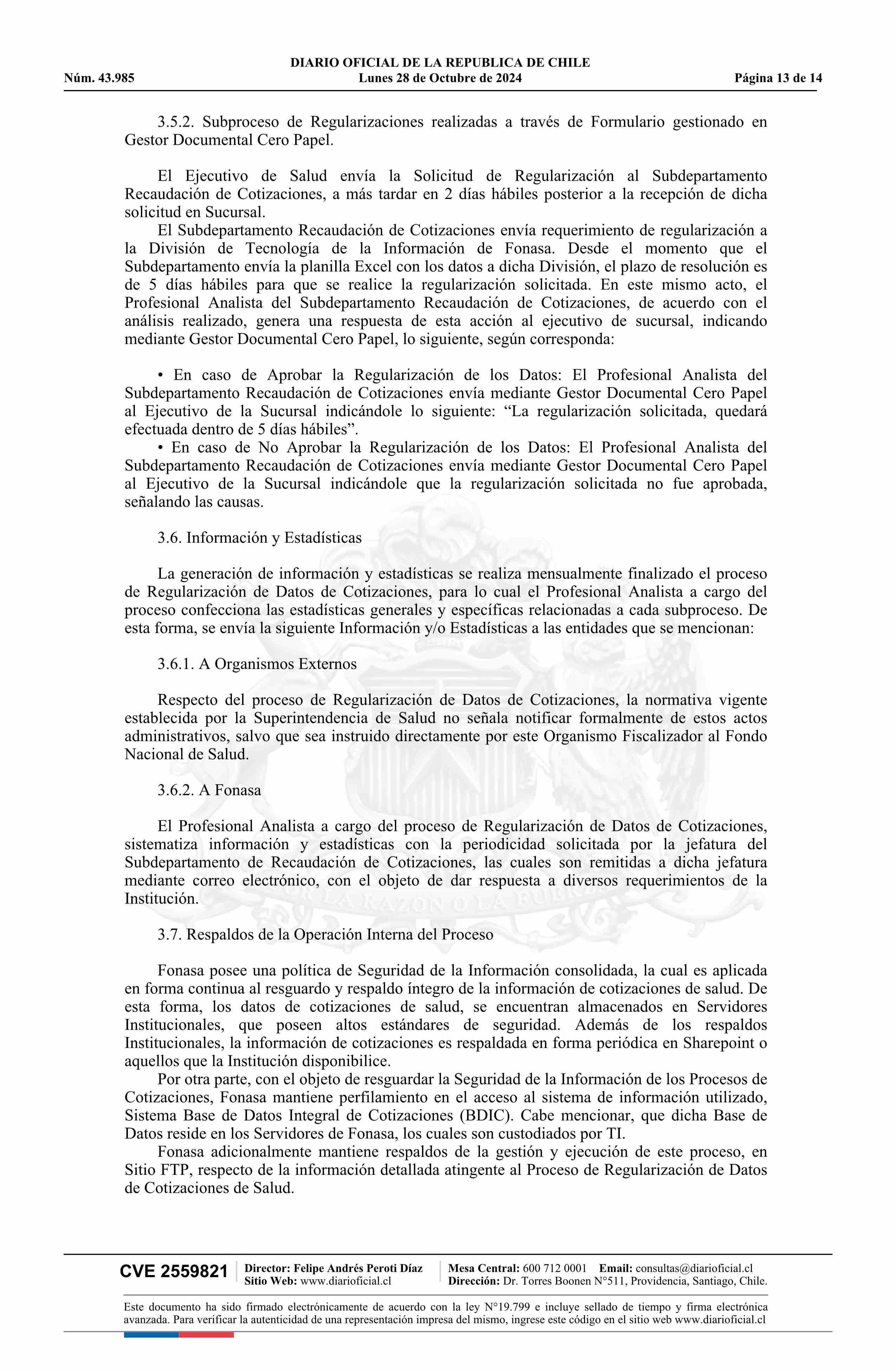 | Título: | Resolución exenta número 3.1J 05, de 2024.- Establece Procedimiento General de Gestión de Regularización de Datos de Cotizaciones |