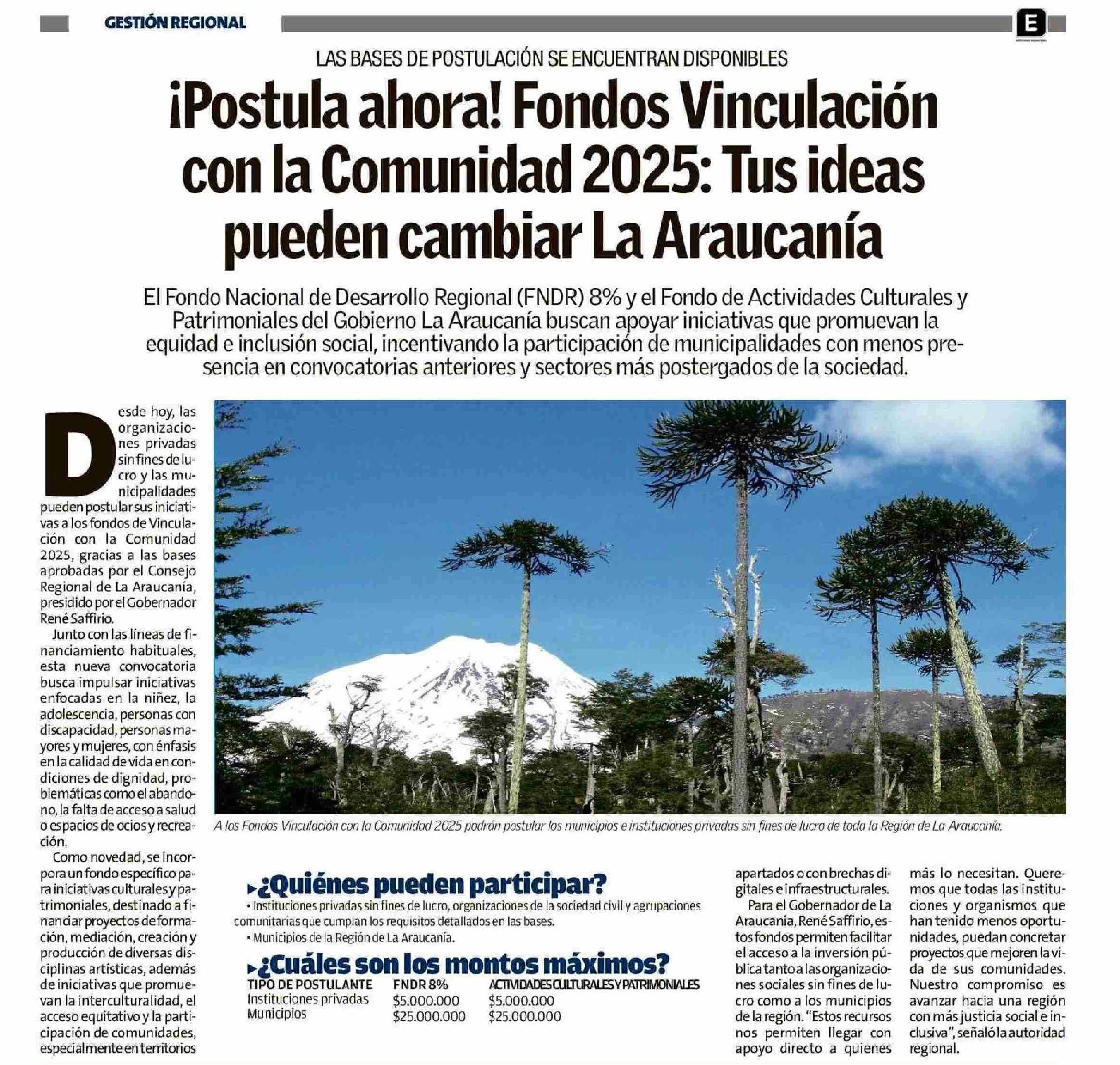 ¡Postula ahora! Fondos Vinculación con la Comunidad 2025: Tus ideas pueden cambiar La Araucanía