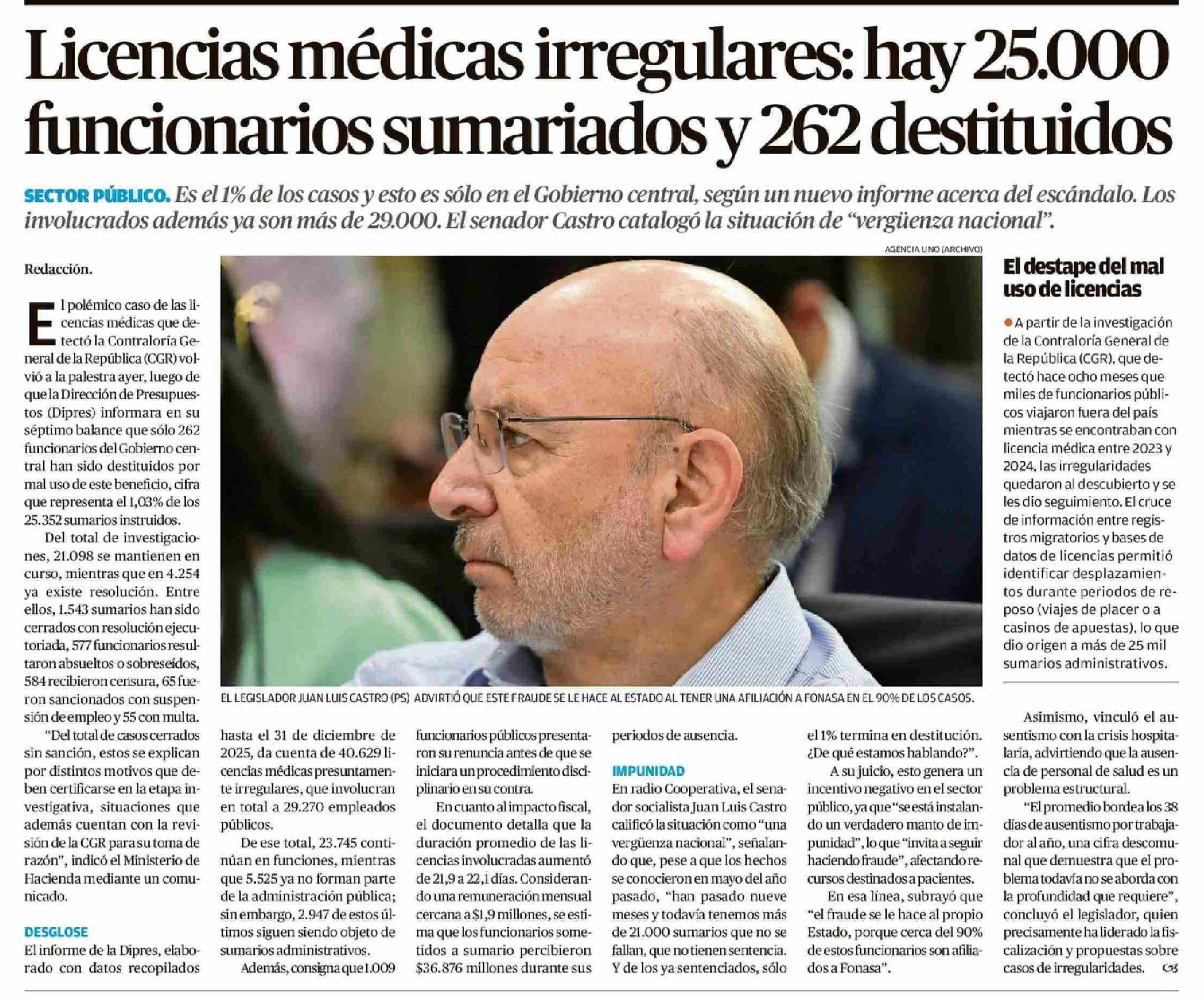 Licencias médicas irregulares: hay 25.000 funcionarios sumariados y 262 destituidos