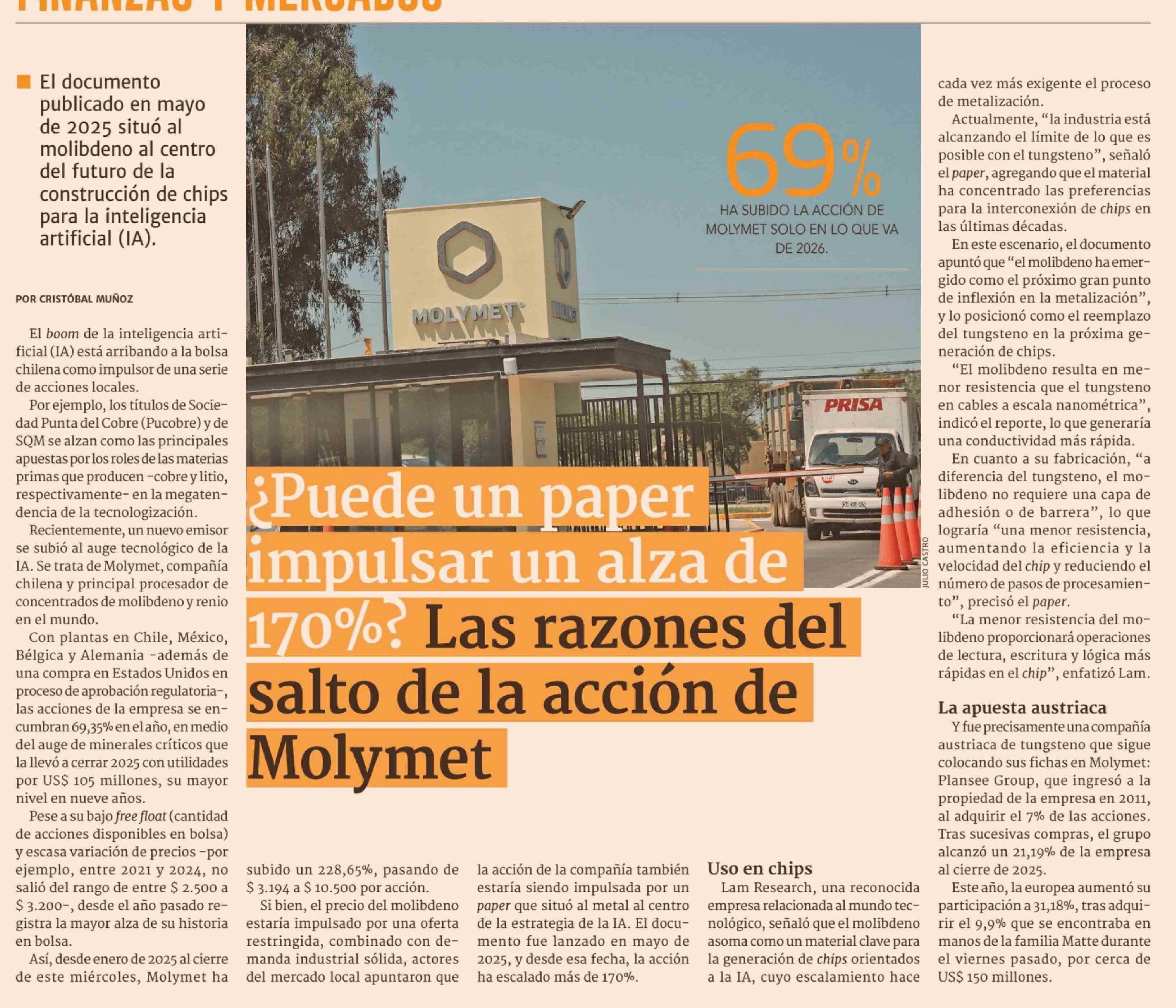 ¿Puede un paper impulsar un alza de 170%? Las razones del salto de la acción de Molymet