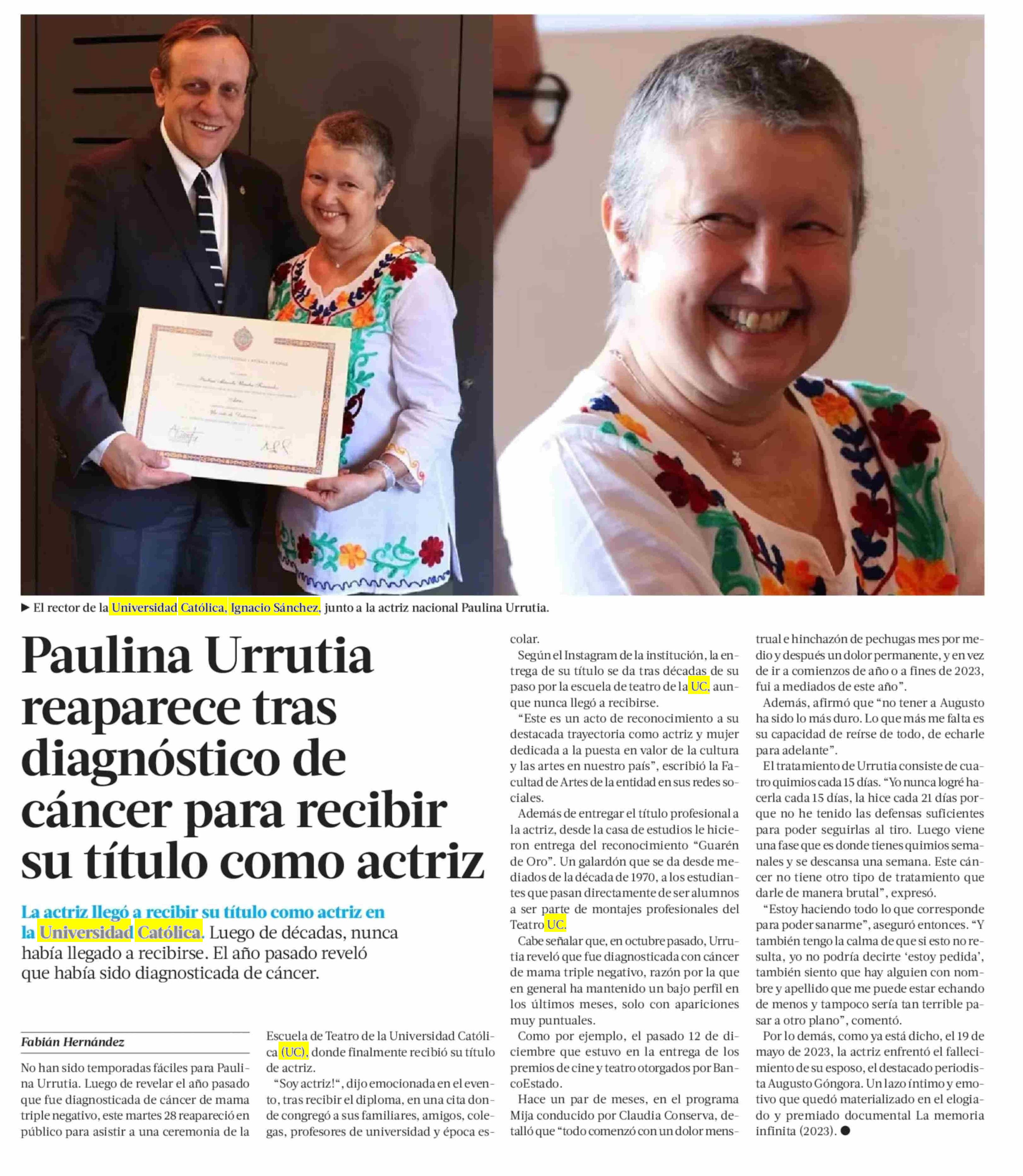 Paulina Urrutia reaparece tras diagnóstico de cáncer para recibir su título como actriz