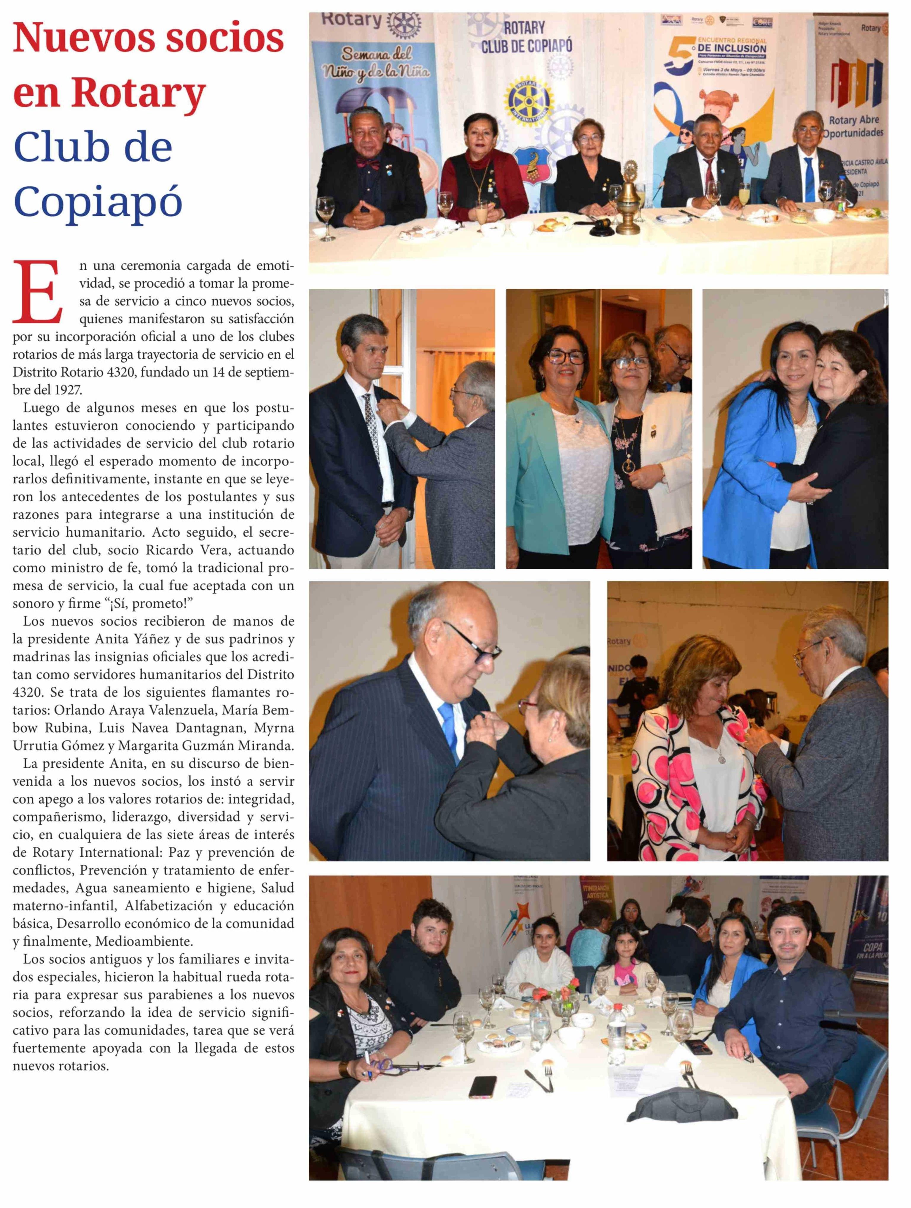 Nuevos socios en Rotary Club de Copiapó